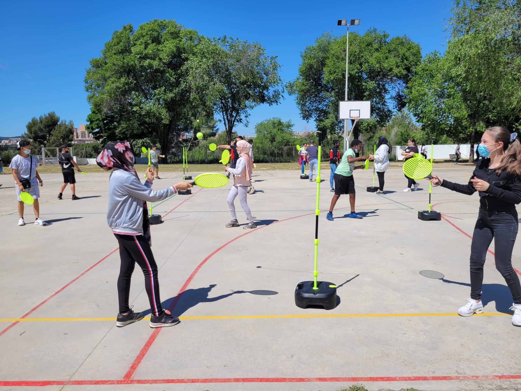 Les noies i nois de 4t d’ESO van dinamitzar aquest passat dijous 26 de maig una jornada esportiva al pati i al gimnàs de l’institut, en la qual hi van participar la resta de nivells. La jornada va tenir una durada de 2 hores, de la 4a a la 5a concretament. Alguns dels esports proposats van ser speedball, cadires col·laboratives, voleibol, dansa, shootball o pickleball. El resultat va ser un matí molt dinàmic, divertit i engrescador, on tots els grups van gaudir de la dinamització de 4t. Finalment, els alumnes de 4t van premiar alguns dels grups amb millor participació, valorant les seves ganes, motivació i actitud.