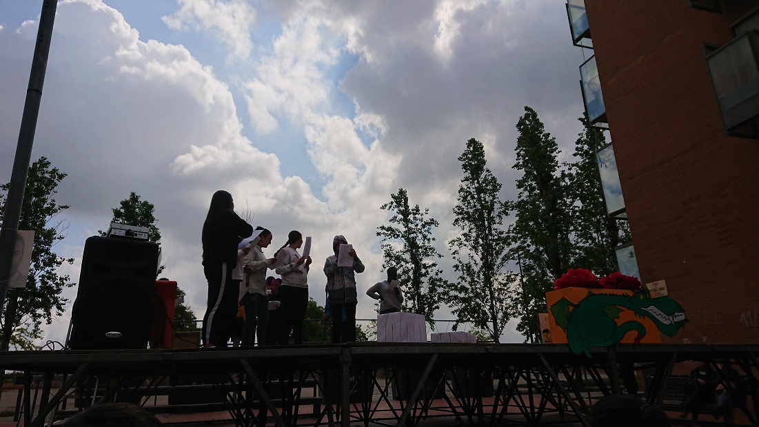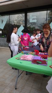 Un grup va fer una obra de teatre, i el altre grup va recitar uns poemes. Els nens de primaria també van recitar un poemes als nens i nenes de l’institut . Després, quan vam acabar de recitar els poemes i representar l’obra de teatre, vam fer activitats: fer flor de paper, fer dibuixos fer gerro