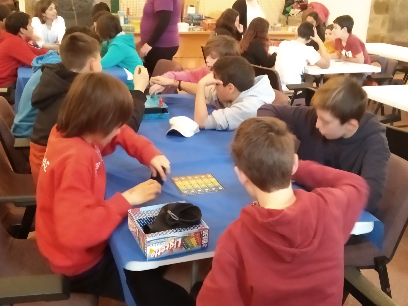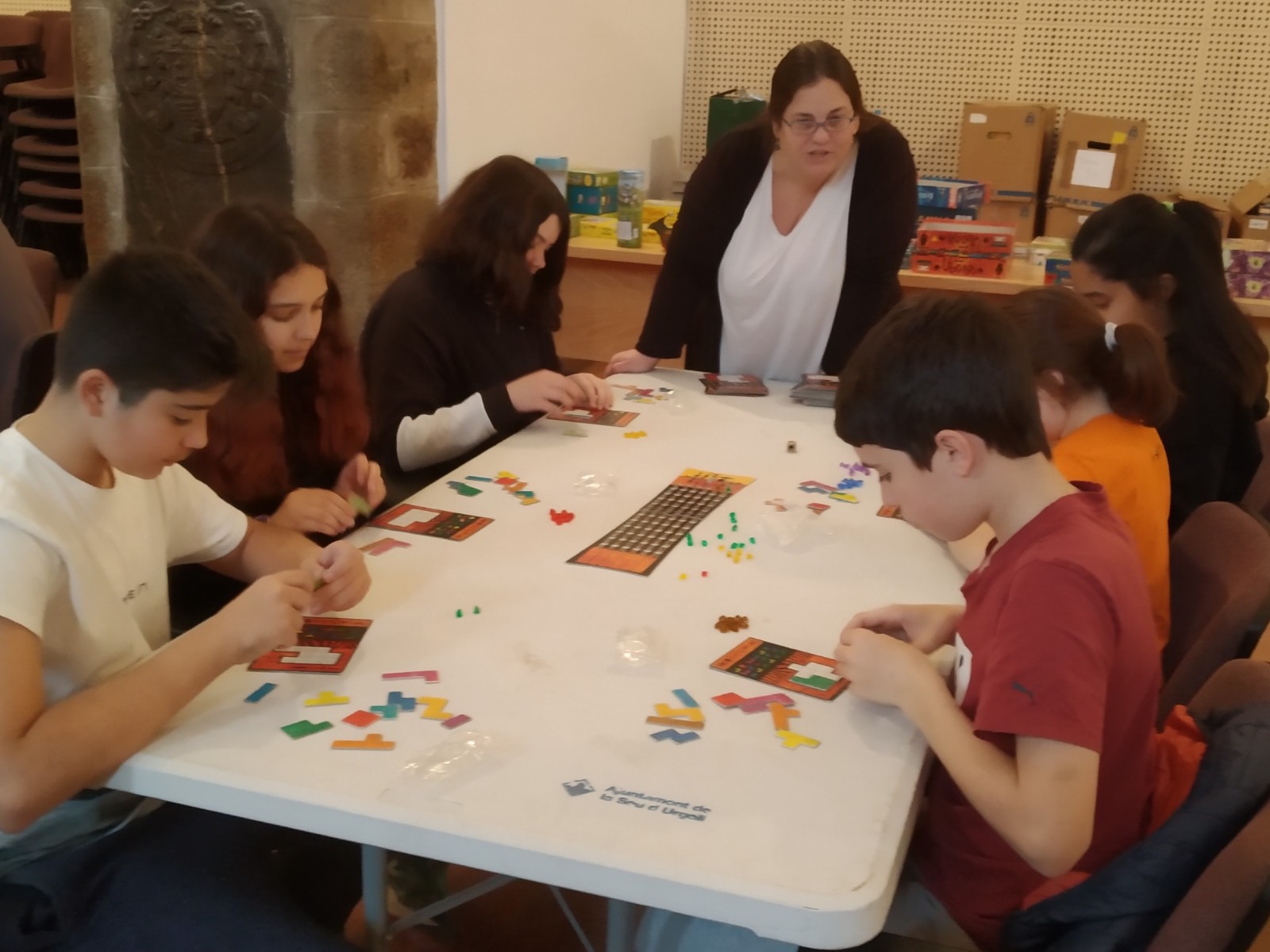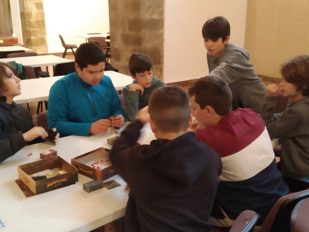Va ser una estona molt divertida, dinamitzada pels organitzadors i organitzadores del festival. Ens va semblar molt interessant que els nostres alumnes de 1r assistissin a aquest taller de jocs perquè van treballar la creació del joc cooperatiu en el projecte transversal de 1r d’ESO i també perquè pensem que és molt important fomentar el joc de taula entre el jovent, sobretot en aquesta època on tots estan molt enganxats als jocs de les màquines.