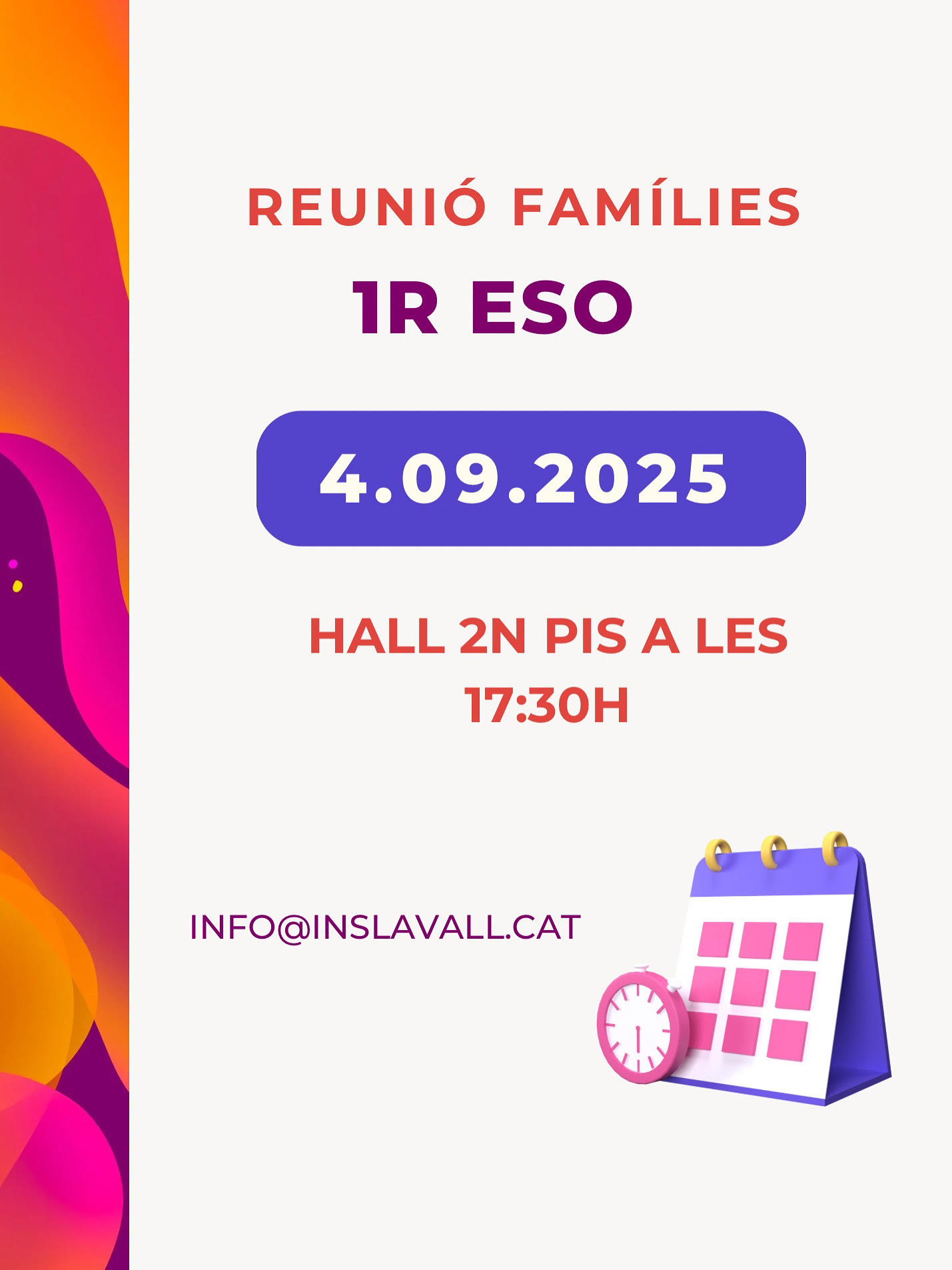 La reunió de famílies tindrà lloc a la sala 1 d'octubre de l'escola Agustí Guifré.