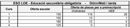 Publicació de l’oferta inicial de places de l’ESO pel curs 2025-26