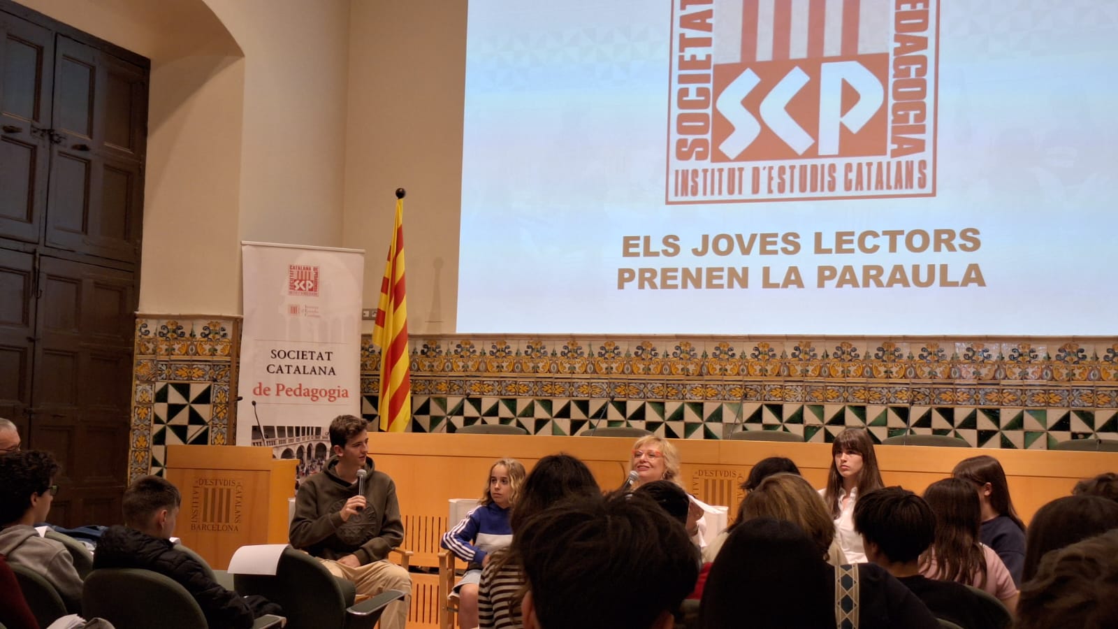 Avui 6 de maig, part de l’alumnat de 3r i 4t d’ESO de l’institut Leonardo ha participat en la II Jornada de joves lectors, sota el títol “Els joves lectors prenen la paraula“, amb l’objectiu de consolidar un espai de diàleg en què els joves puguin expressar les seves inquietuds, reflexionar sobre els reptes de la lectura en les noves generacions. L’acte ha tingut lloc a l’Institut d’Estudis Catalans, al bell mig del centre de Barcelona, i organitzat per la Societat Catalana de Pedagogia. S’ha portat a terme una taula rodona formada per un representant de cada un dels quatre instituts participants i moderada per l’escriptora Gemma Pasqual. Han estat debatent sobre la importància de la lectura entre els joves i com es podria fomentar aquest hàbit tan important entre el jovent d’avui dia. Després de la taula rodona i de compartir les seves visions i propostes ens han fet una visita guiada per l’IEC, entrant a l’espectacular capella barroca, al claustre i al seu jardí plena de flors i plantes aromàtiques.