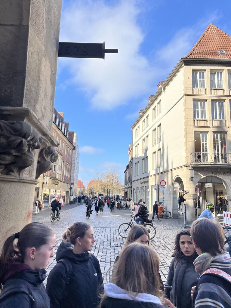 El dia ha començat amb una visita guiada per la ciutat de Münster. Hem descobert alguns dels seus llocs més emblemàtics com la Catedral (St.-Paulus-Dom), el mercat i l’Ajuntament. Ha estat una oportunitat fantàstica per conèixer millor la seva història i cultura. Després, ells i elles han compartit el dinar amb els seus companys alemanys.