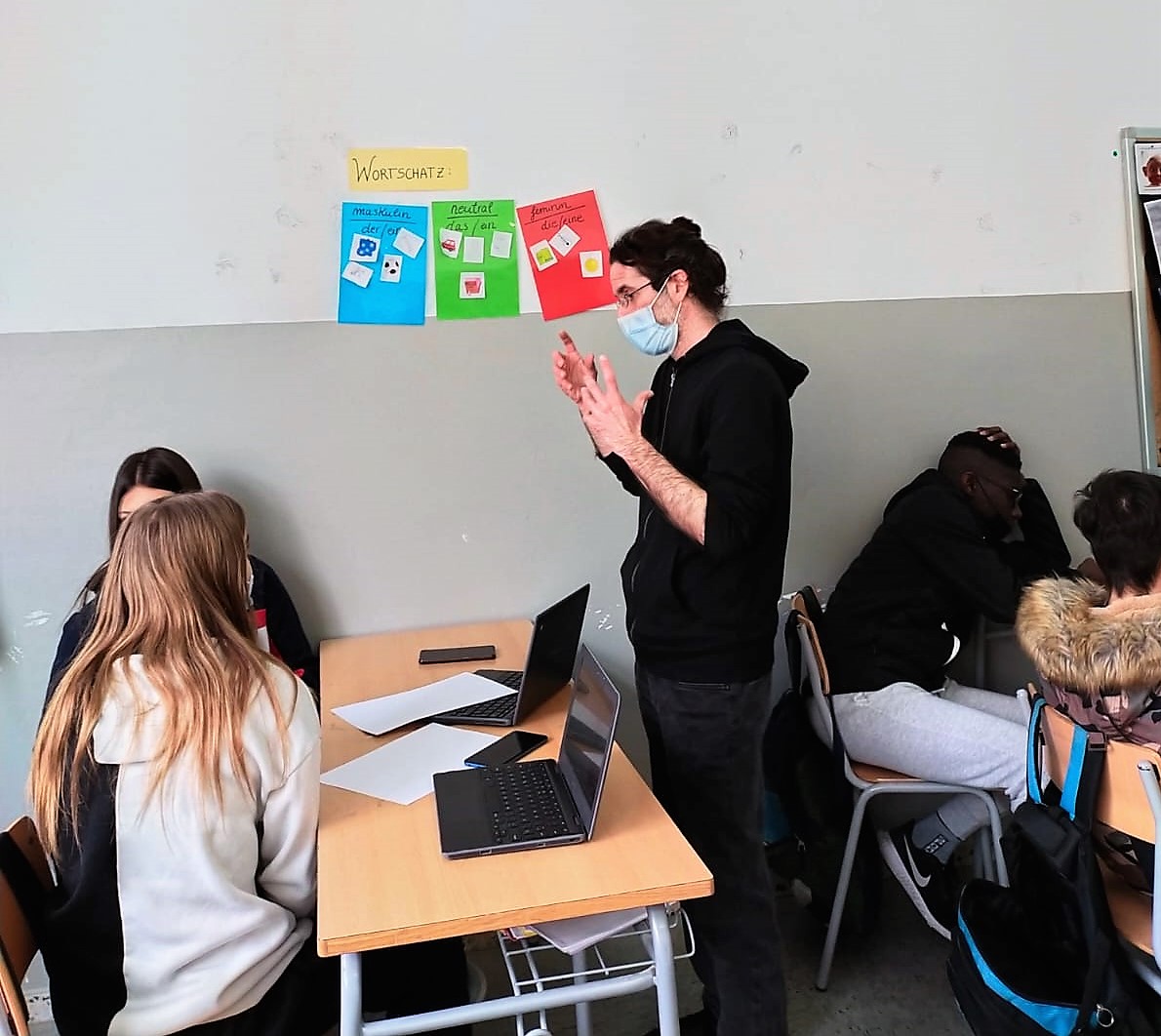 El poeta Ramon Bartrina ha vingut a fer-nos el primer taller sobre rapsòdia i poesia medieval. L’alumnat de 2n ha creat els seus sirventesos inspirats en la poesia crítica dels trobadors i les trobairitz i, d’aquí dues setmanes, els recitaran recreant l’ambient de les corts medievals fent, però, crítica a alguns aspectes d’actualitat.