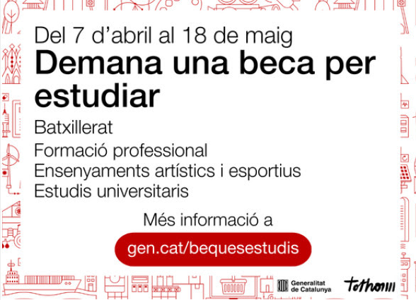 Si el curs 26-27, comences qualsevol d’aquests estudis potser pots sol·licitar una beca. Encara que no sàpigues què estudiaràs, on estudiaràs ni quines notes trauràs, demana… Llegeix més»