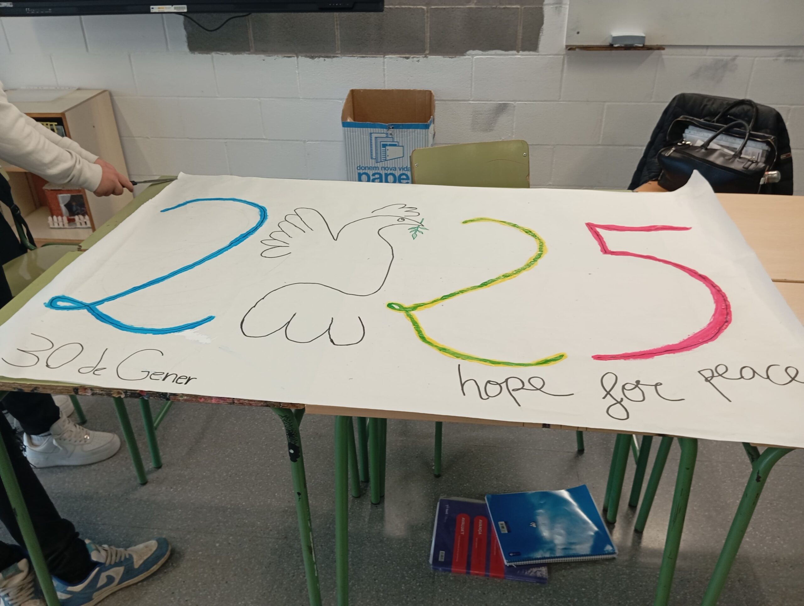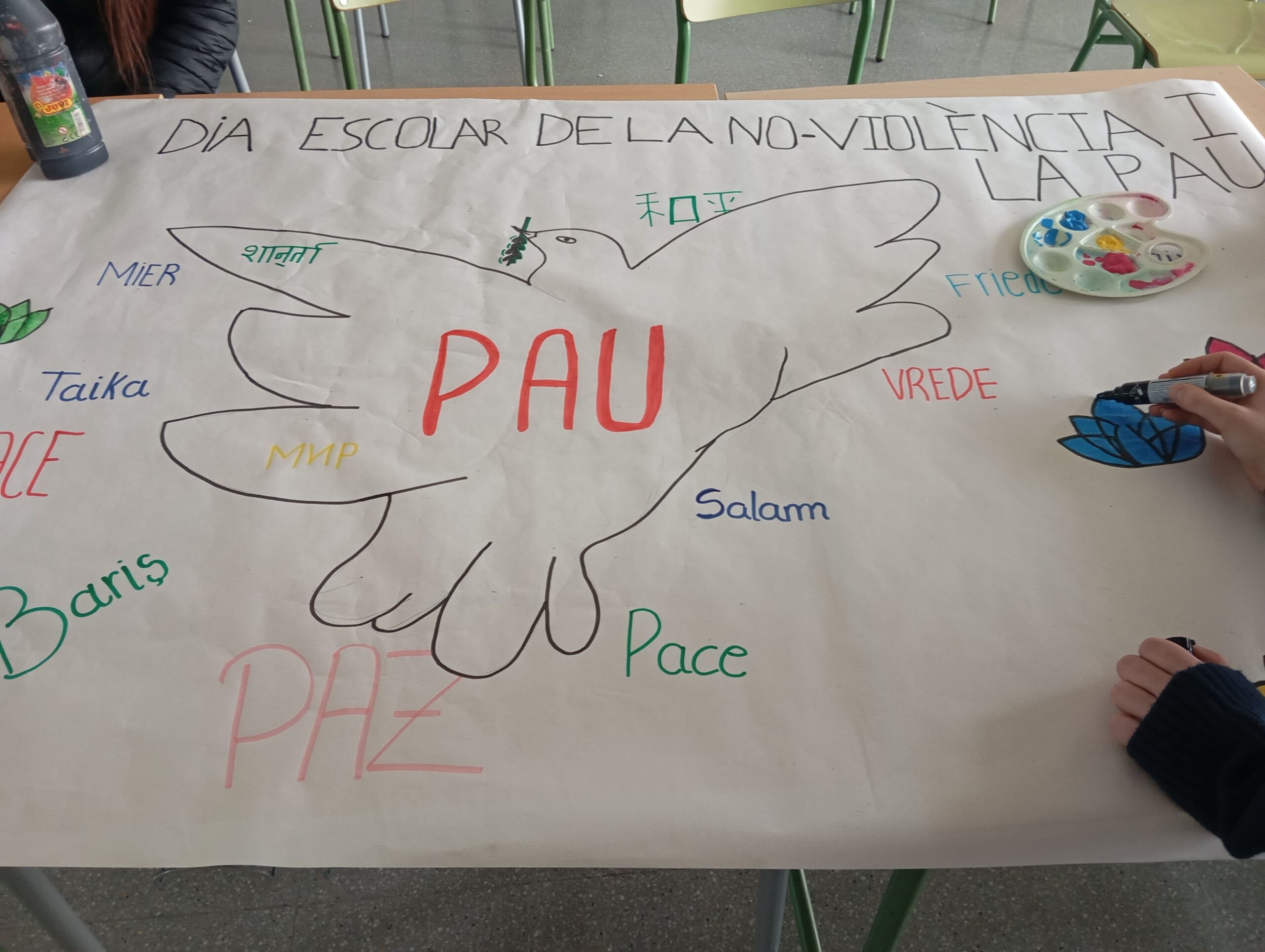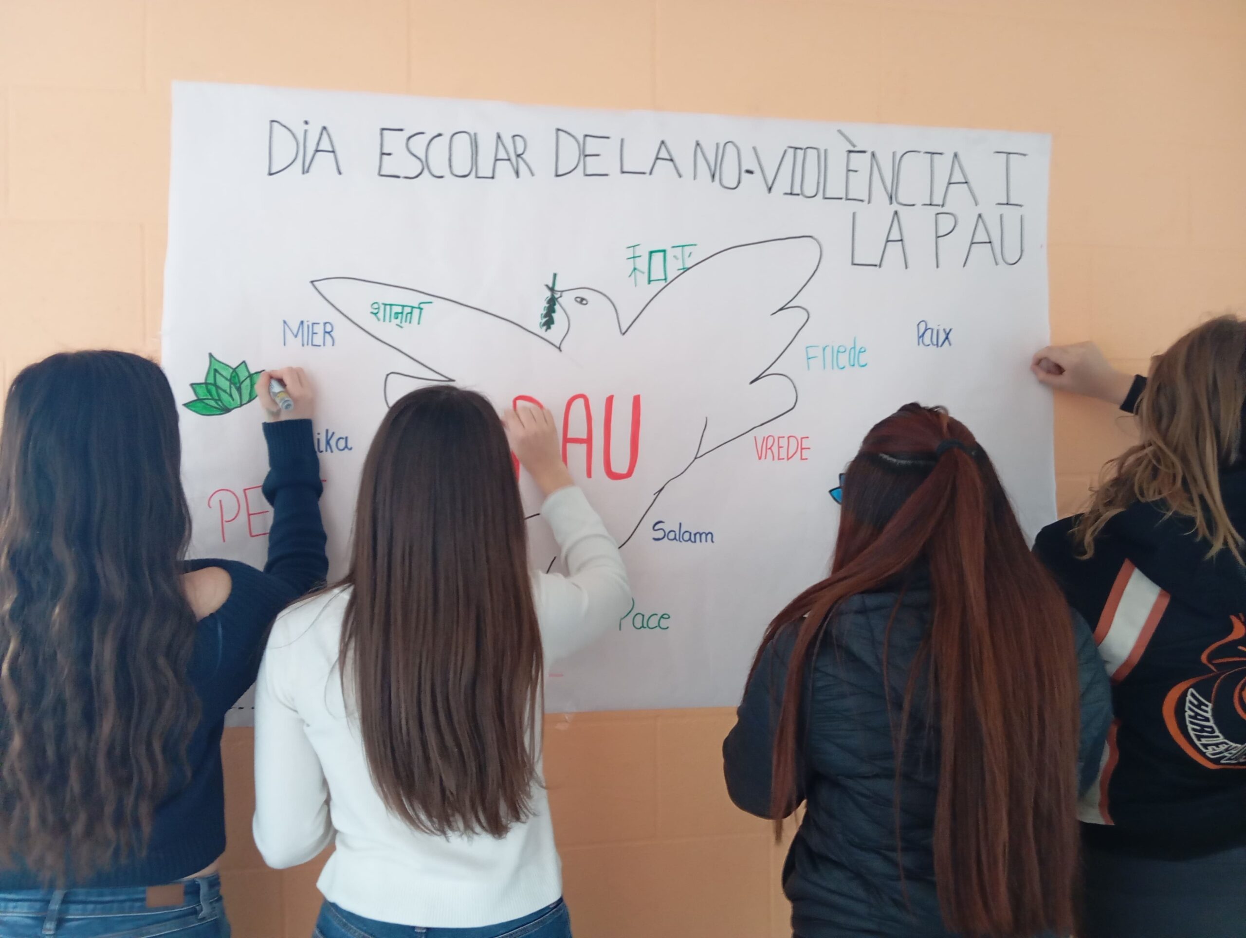 Els alumnes de l’optativa de religió hem realitzat uns murals i activitats relacionades amb la No-violència i la Pau per celebrar aquest dia. El fet que aquest dia se celebri als centres, on les joves generacions estan en formació és fonamental. Els centres educatius són espais ideals per sembrar les llavors d’un futur més just i pacífic, on les diferències siguin respectades i valorades.