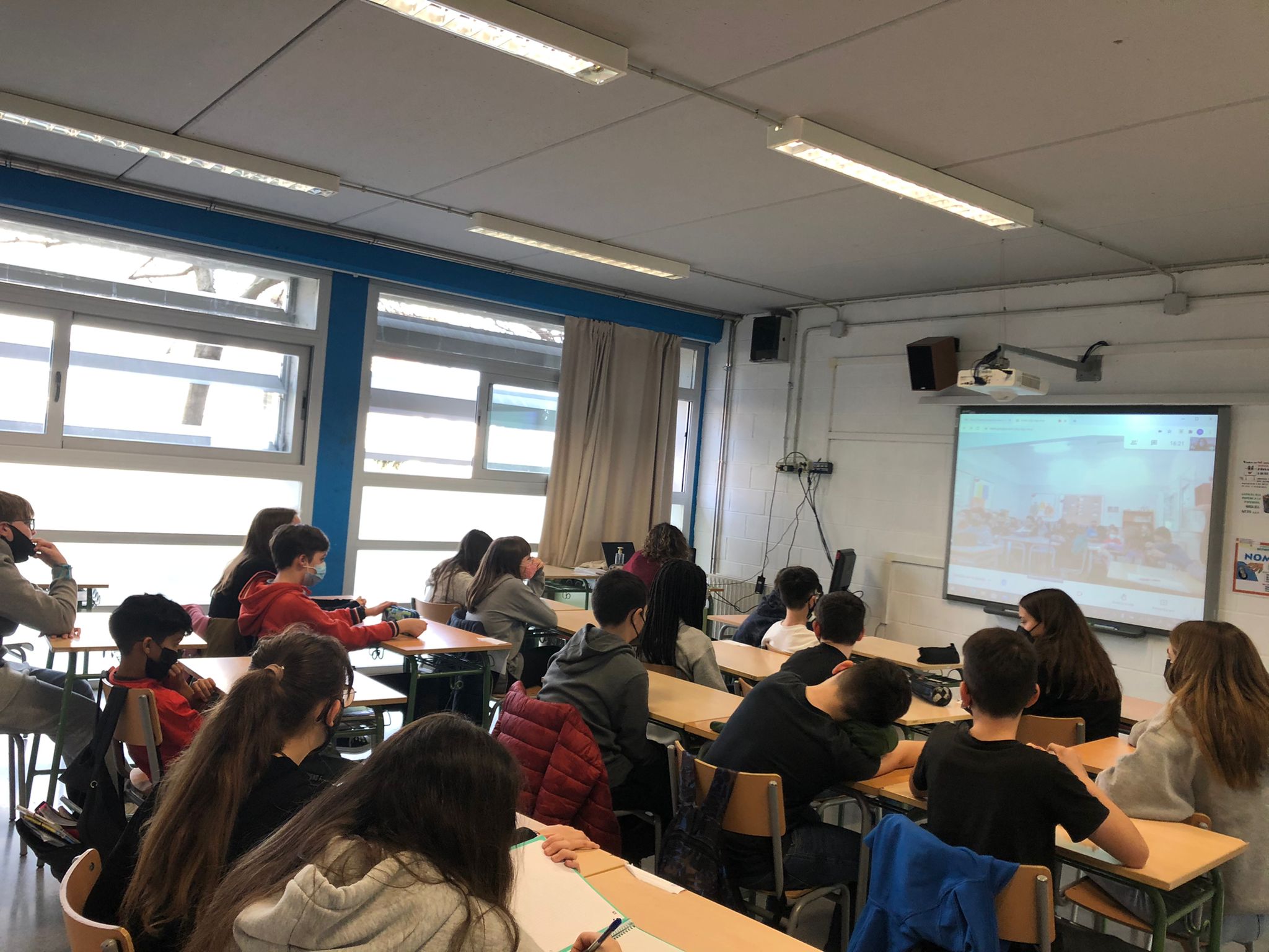 Es va agrupar l’alumnat del nostre centre per escoles d’origen i es van posar en diferents aules per tal de fer una vídeotrucada amb les seves antigues escoles de primària. Malgrat la distància, els alumnes de primària van poder tenir informació de primera mà per part del professorat de l’institut i també van tenir l’oportunitat de preguntar tot allò que els inquietava. Els seus excompanys d’escola, i ara alumnes de l’institut, van ser els encarregats de resoldre’ls el els dubtes.
