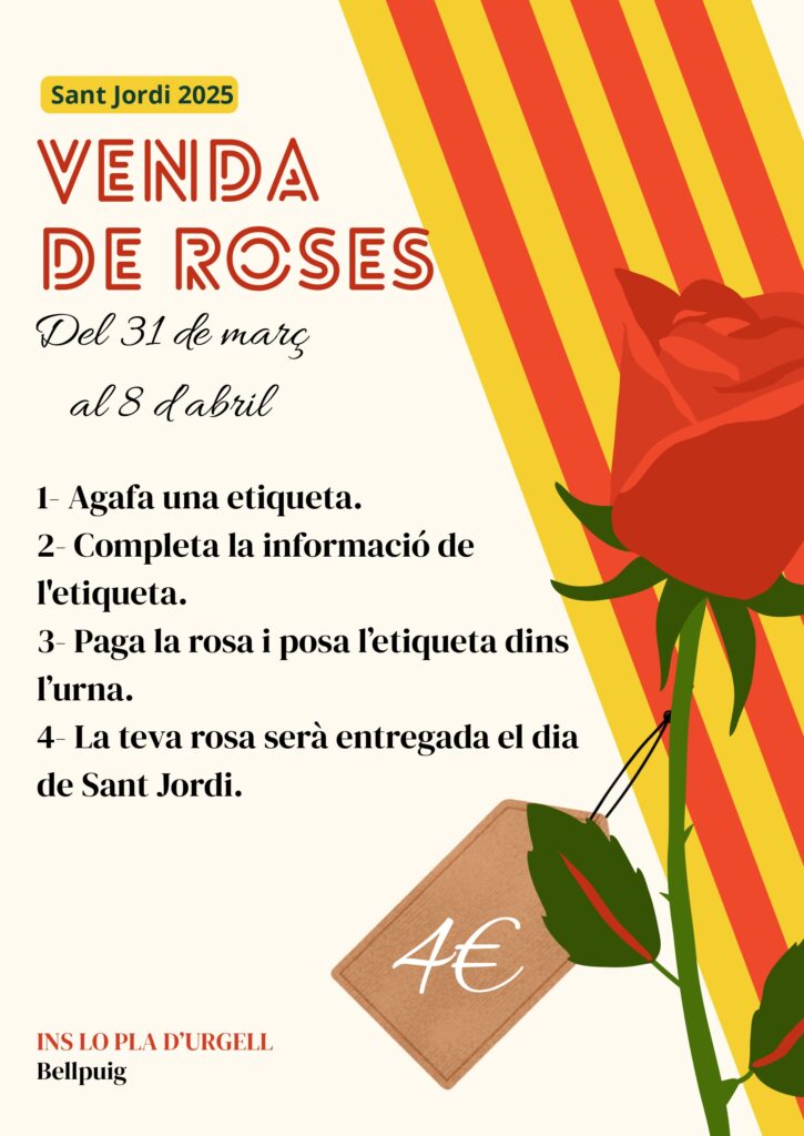 Aquest projecte no només fomenta l’esperit de la festivitat, sinó que també permet als estudiants desenvolupar habilitats d’organització, comunicació i treball en equip. La venda de roses tindrà lloc durant el matà del 23 d’abril, a diferents punts de l’institut.