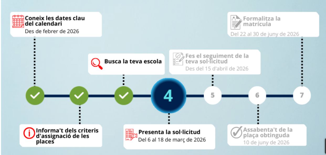 - 3 de març de 2026: oferta inicial de places escolars.
