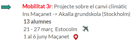 Ja s’han planificat i concretat dues mobilitats d’alumnes, amb el següent detall: