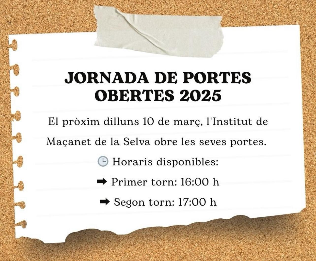 El pròxim dilluns 10 de març, l’Institut de Maçanet de la Selva obre les seves portes per donar-vos a conèixer el nostre projecte educatiu i les instal·lacions del centre.