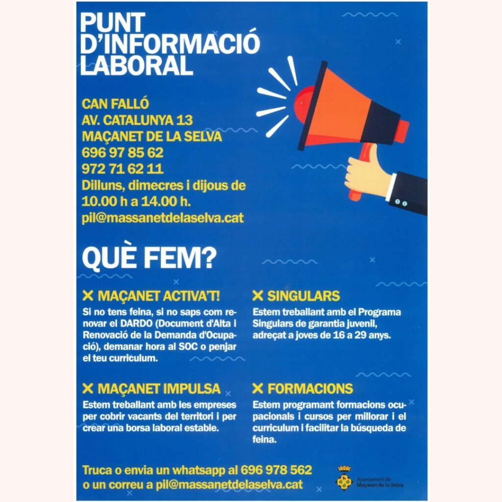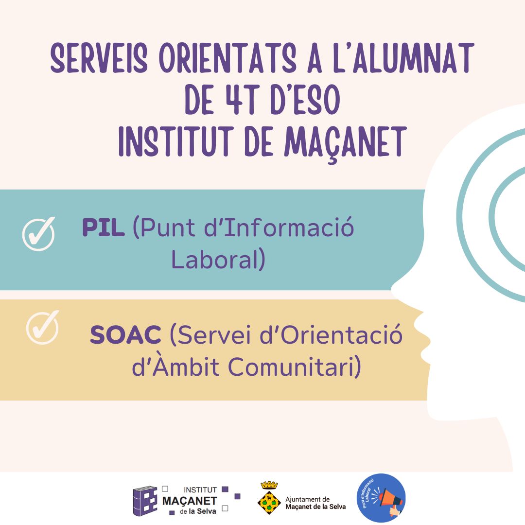 🧑🏻‍🍳👷🏻‍♀️El Punt d’Informació Laboral i el Servei d’Orientació Comunitària han ofert una xerrada als alumnes de 4t d’ESO de l’Institut de Maçanet per presentar-los tots els serveis i recursos disponibles a partir dels 16 anys.