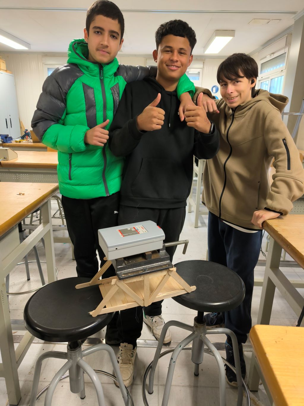 Bevinguts al repte de l’any! Aquí tenim una col·lecció de fotos d’alumnes de 3r d’ESO posant a prova les seves habilitats d’enginyeria amb… escuradents i pals de gelat! Però, esclar, no tot és tan fàcil com sembla! Entre els ponts que es van trencant a mitja construcció i el desafiament de fer encaixar tots els pals, aquests joves enginyers han hagut de treure la seva millor creativitat i treball en equip. Però no us preocupeu! Amb paciència i molta imaginació, han superat tots els obstacles. Com a bons arquitectes, han aconseguit construir ponts que, fins i tot, podrien competir amb els més grans! Gaudiu de les seves aventures constructives!