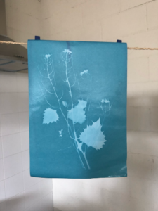 Els treballs que exposaran són unes cianotípies realitzades a l’institut. Per poder enllestir aquest treball, l’alumnat va fer una recollida de mostres botàniques al riu Tenes, les va assecar i premsar, les van insolar a sobre d’un paper emulsionat que després van esbandir i van deixar assecar.