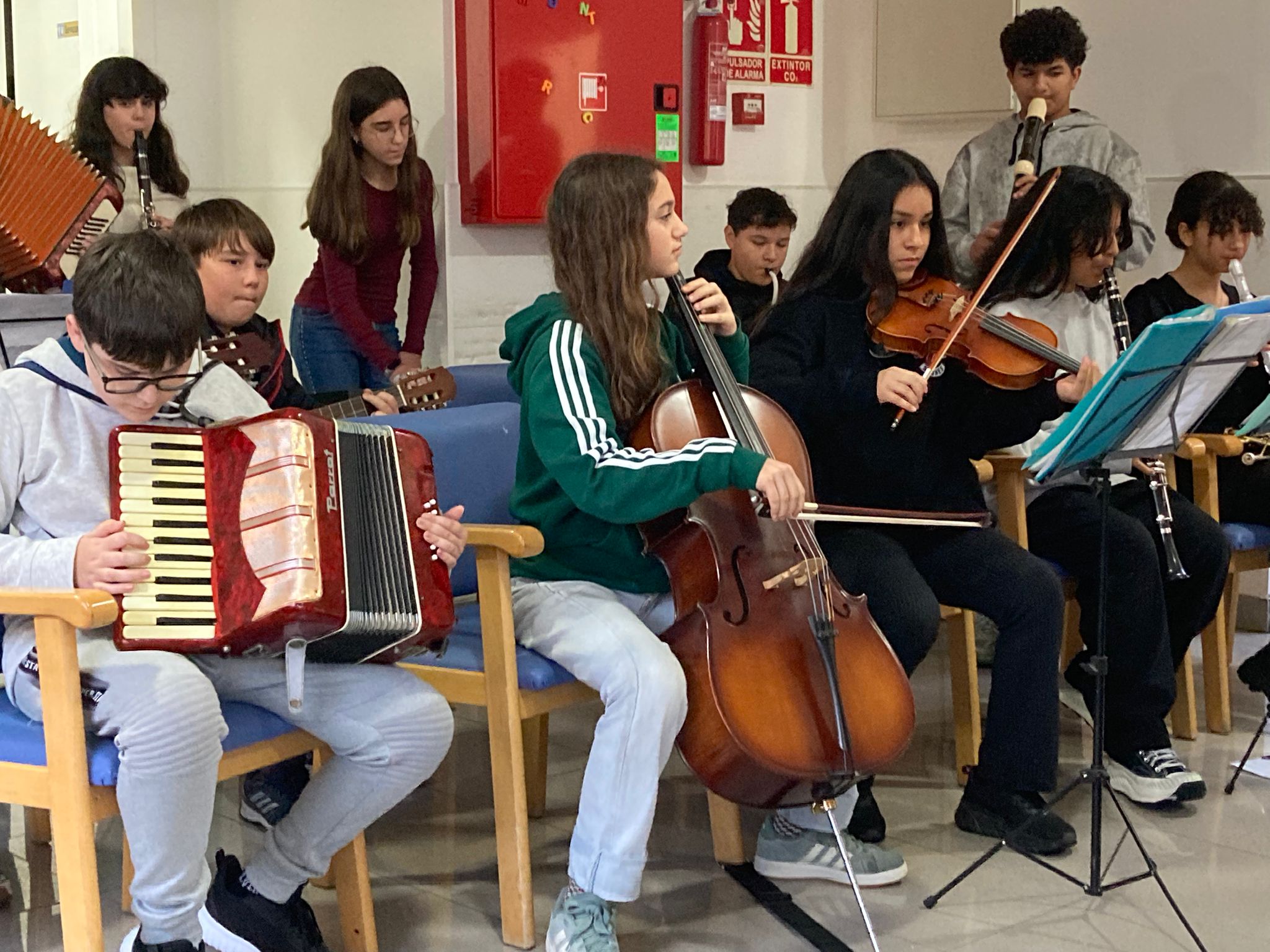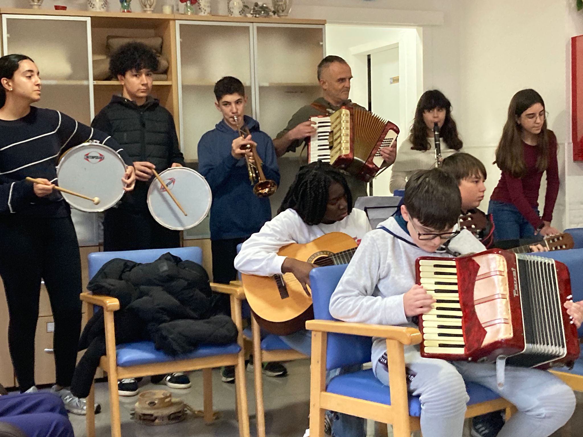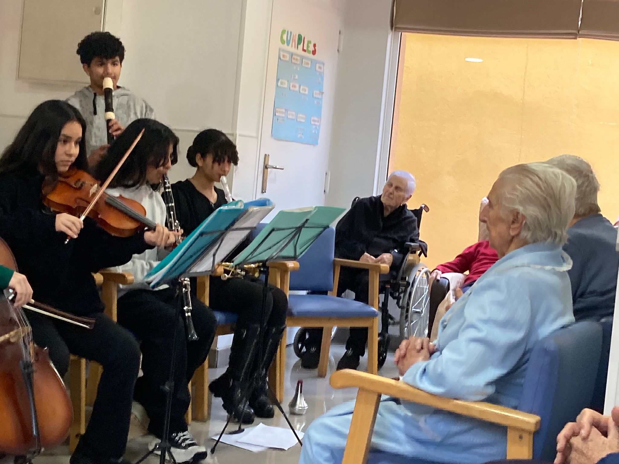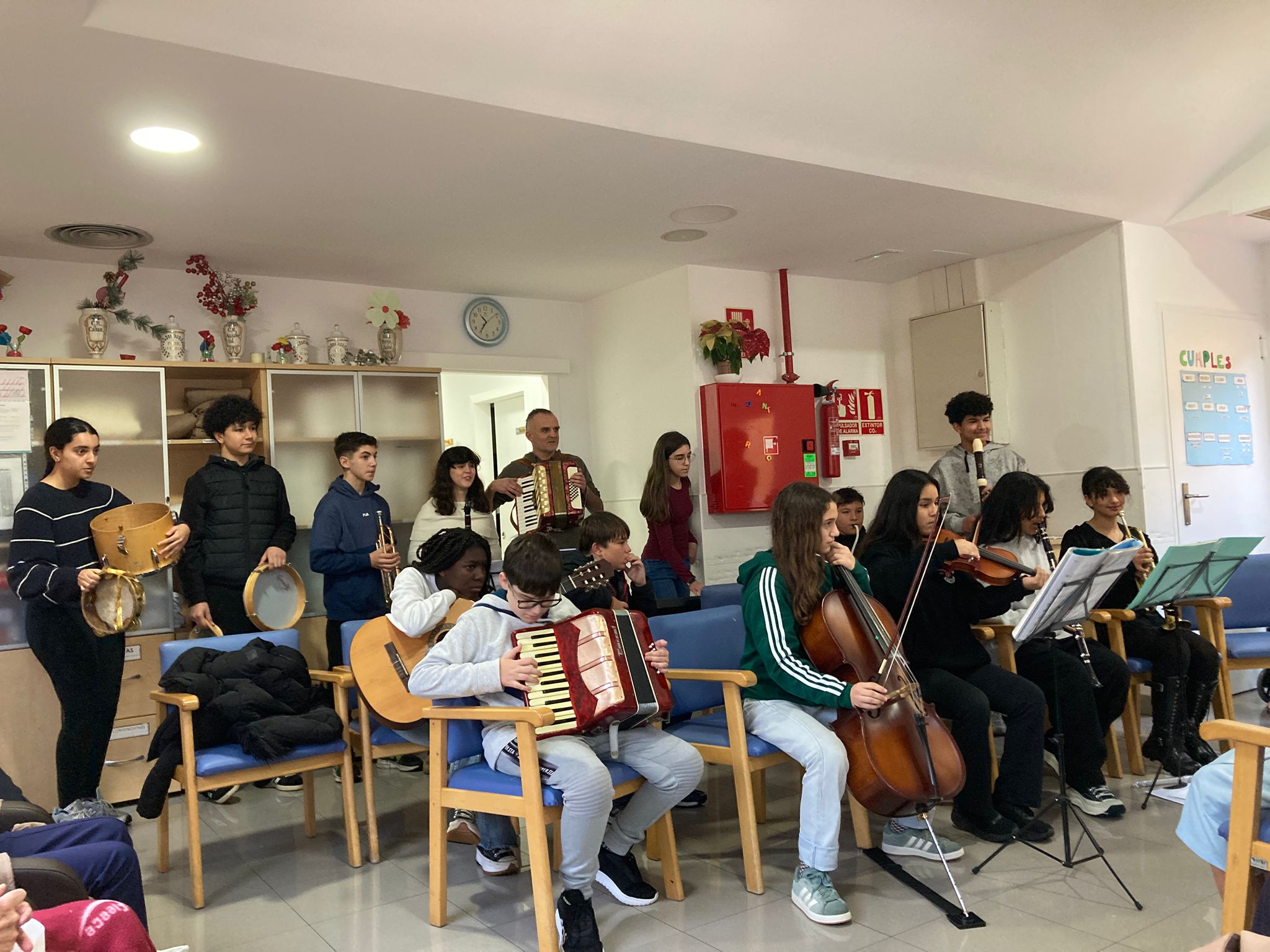 El passat 20 de gener de 2026 la nostra Banda Schnapy de l’Institut Marianao vàrem anar a actuar a la Residència de Viladecans. Aquesta banda de música està formada per alumnat de diferents cursos de l’ESO. En total, anàrem 14 alumnes amb diferents instruments com el violí, el violoncel, el clarinet, l’acordió, un teclat, una melòdica, guitarres i percussions. A més, vàrem cantar algunes cançons. Allí vam conèixer una dona que tenia cent un anys i ens contava moltes coses de quan de jove ballaven al seu poble d’Andalusia. A tot el públic li va agradar molt la nostra música. Tot i l’abundant pluja, anàrem i tornàrem a Viladecans sense més problemes. Les persones treballadores de la residència ens van tractar amb molta atenció i també els hi va agradar molt el concert. Per cert, pel camí ens adonàrem que Schnapy, la nostra mascota, no havia vingut. En tornar ens va confessar que no li agradava la pluja. Sabíem que Schnapy era un cocodril estrany, però no tant. De totes maneres, ens ha dit que a la pròxima no fallarà. Per acabar, ens han convidat de nou a amenitzar la jornada a una altra residència de Sant Boi, sortida que deixarem per al pròxim mes de març.