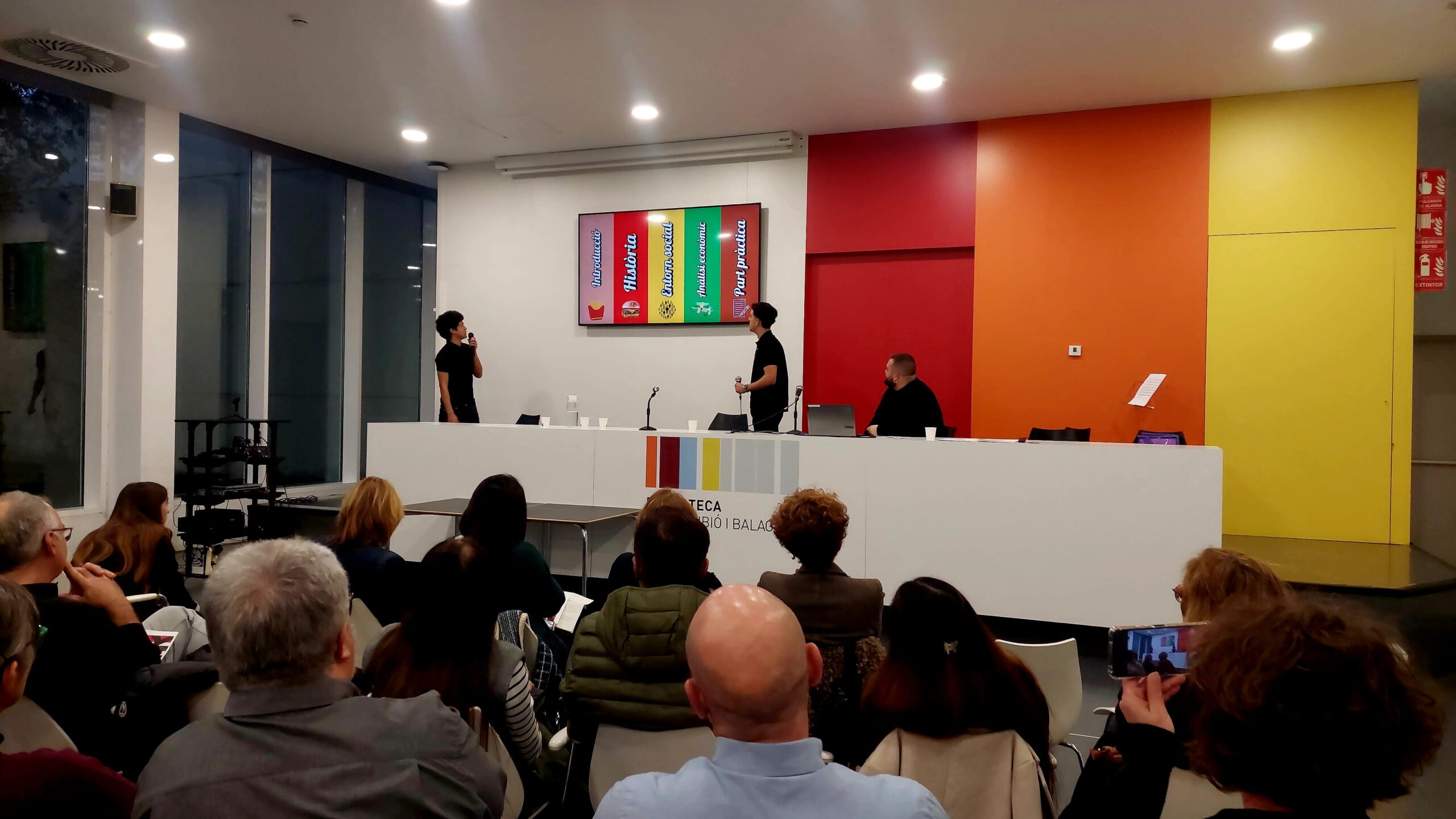 Els representants de l’INS Marianao van ser els 6 alumnes que han tret un 10 en el seu TR: la Leyre Corral + la Laia Mijes (Intolerància a la lactosa), en Pol Serrano (Prototip d’una aeronau no tripulada), l’Ona Bosch (Missions internacionals i ajuda humanitària de l’exèrcit espanyol) i l’Aleix Hernández + en Gabriel Nieto (McDonald’s: Innovació i adaptació), que van fer l’exposició oral.
