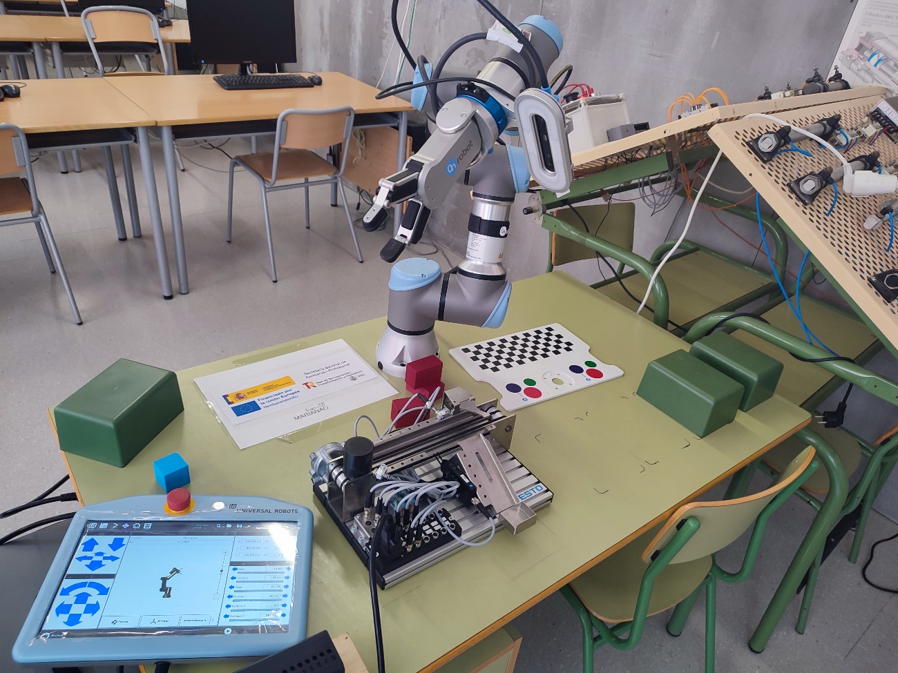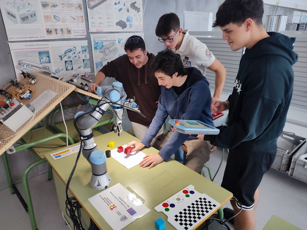 A les fotos veiem l’alumnat fent les primeres proves amb el robot i la càmera de visió artificial. Tant de bo sigui profitós per a totes i tots els alumnes.