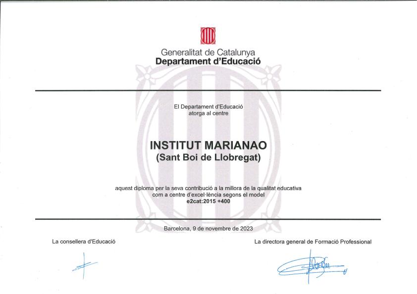 El segell e2cat és un distintiu que reconeix la qualitat en centres educatius que van més enllà de l’estricte compliment de la normativa i implementa pràctiques innovadores.