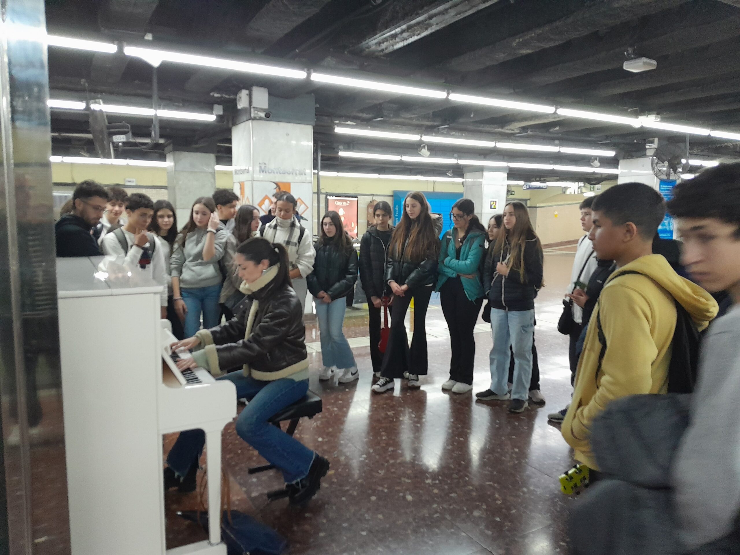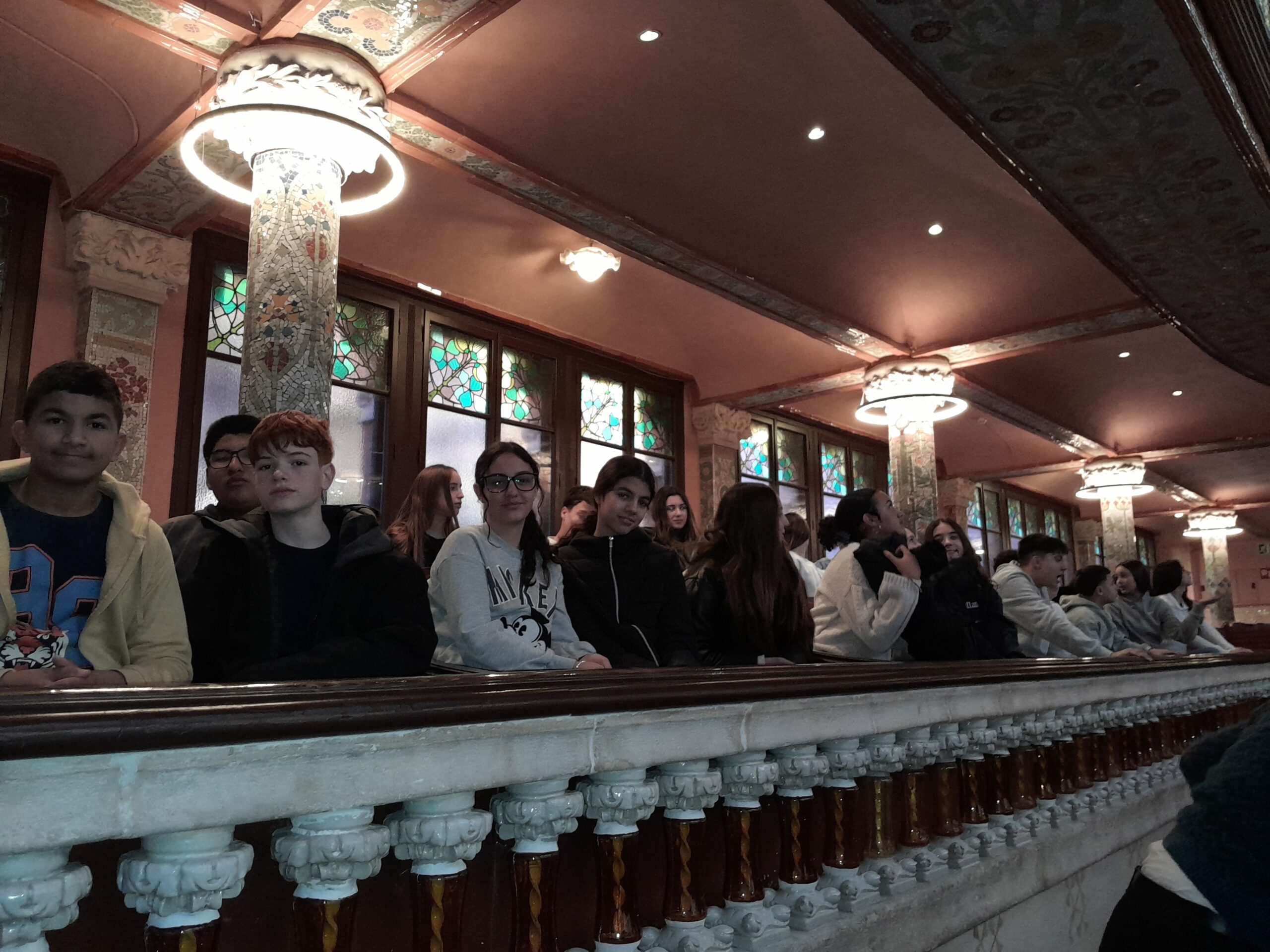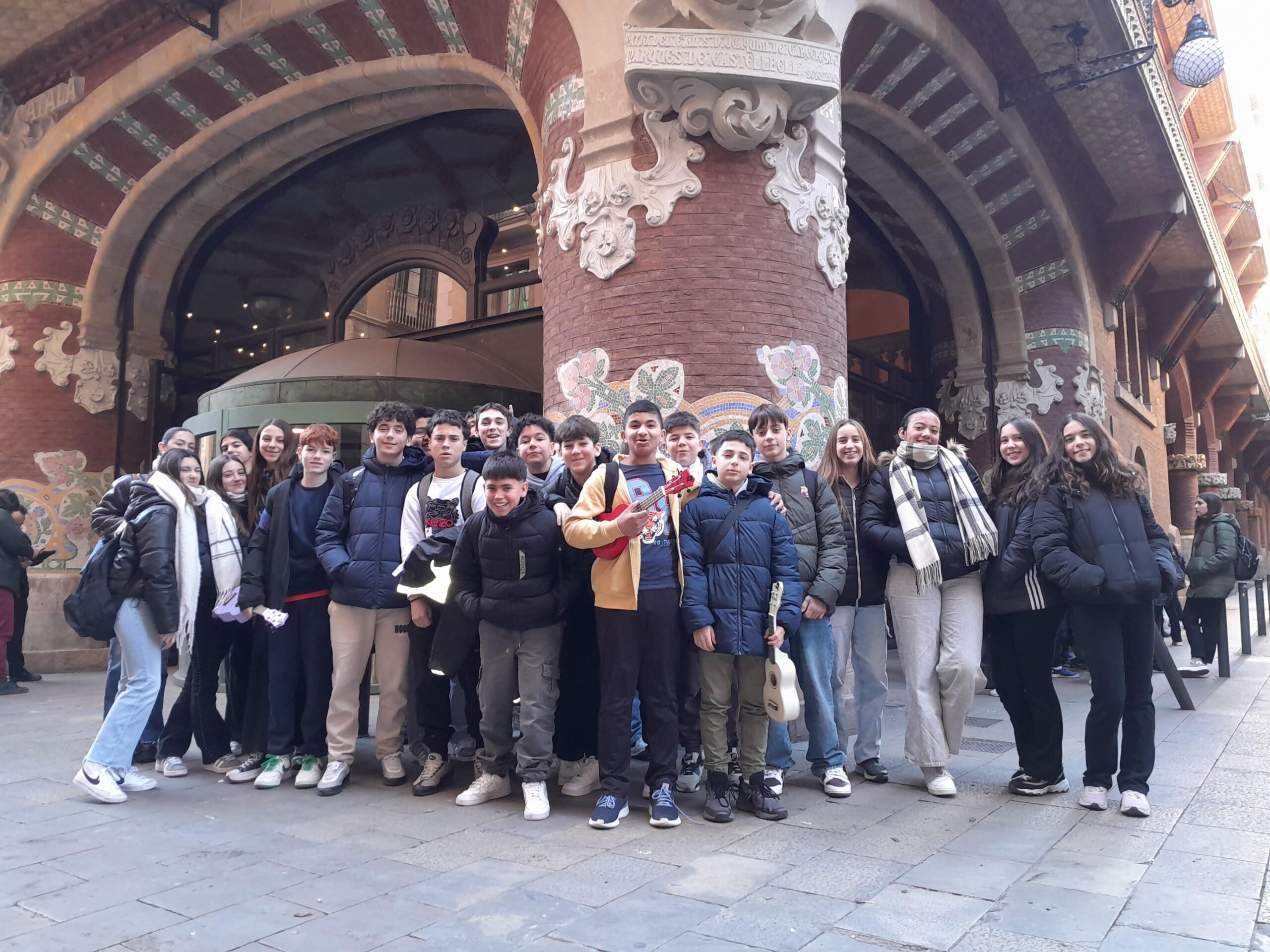 El passat dimecres 15 de gener el grup classe de 2n B vam acudir al Palau de la Música Catalana a gaudir de l’espectacle Flamenkat. En aquest concert i en aquesta meravellosa joia arquitectònica modernista escoltàrem temes impressionants d’aquest gènere musical  amb cantaores, palmes, cors, flauta travessera, contrabaix, guitarra flamenca, clàssica i elèctrica, castanyoles i caixó acompanyats de dansa amb coreografies molt interessants. Aquests músics i balladores interpretaren pals tradicionals com la soleà, martinete, alegríes, guajires, tangos, buleries amb temes emblemàtics del flamenc com “La leyenda del tiempo” del poeta granadí Federico García Lorca cantada per Camarón de la Isla, el tema “Entre dos aguas” de Paco de Lucía i obres de compositors de música clàssica que van inspirar-se en aquestes sonoritats com Manuel de Falla, Albèniz o Francesc Tàrrega, sense oblidar-se del Cant dels ocells. Després d’esmorzar compràrem un ukulele groc per la classe, vàrem fer un recorregut pels llocs més emblemàtics de la música a les Rambles de Barcelona fins al Moll de la Fusta. Coneguérem tendes de partitures amb noms de compositors alemanys, el que és l’ofici del lutier, les característiques del Gran Teatre del Liceu, les pizzeries que porten noms de compositors destacats d’òpera italians, l’hotel on s’allotjava el pianista polonès Frederic Chopin, el fantàstic bosc de les fades que porta el nom de la primera òpera de Richard Wagner o l’estàtua del poeta català Joan Salvat-Papasseit, poemes del qual van interpretar des de Joan Manuel Serrat fins a l’Ovidi Montllor. Tornant cap a casa ens trobàrem un piano a l’estació de trens de FGC de plaça Espanya, amb el qual la nostra companya Paula i la professora de música Maria Rivas van tocar unes cançons molt boniques que van deixar a tothom bocabadat.