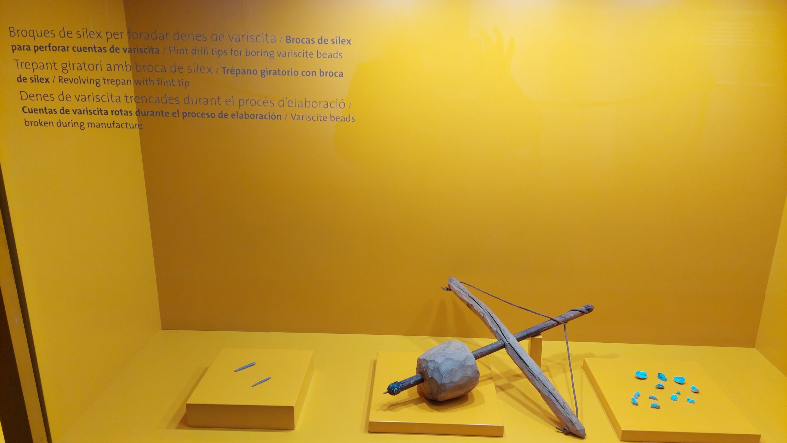 Al segon van fer dues activitats: Una visita guiada al recinte arqueològic, amb l’entrada a la reproducció de galeries de les mines prehistòriques de variscita i el taller “Joieria Prehistòrica”. Mitjançant una activitat plàstica (el procés d’elaboració de les joies), els alumnes van entrar en contacte amb la tecnologia de l’època neolítica d’una manera lúdica i creativa, emportant-se a casa un penjoll de fabricació pròpia com a record.