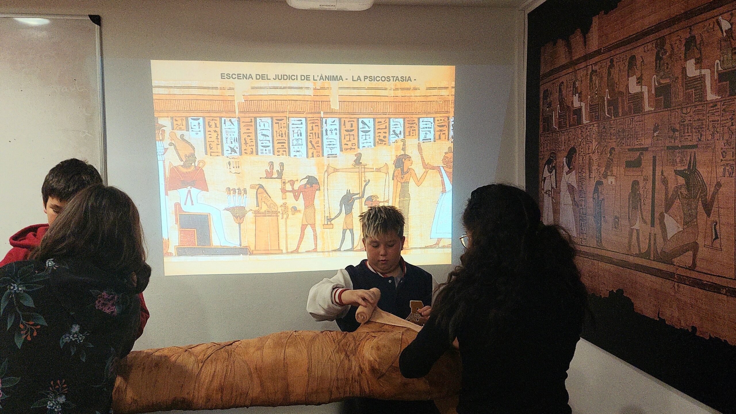 El dilluns 19 de desembre els grups de 1r ESO hem anat a visitar el Museu Egipci de Barcelona. Abans d’anar-hi havien treballat a l’aula el tema de les civilitzacions fluvials. Per això, hem gaudit molt de la visita guiada i el taller de momificació. A més, hem pogut veure l’exposició temporal sobre la descoberta de la tomba de Tutankamon (1922), on encara es pot veure a la paret la taca de “sang falsa” llançada, per dos activistes, el passat 13 de novembre, en protesta per l’emergència climàtica.