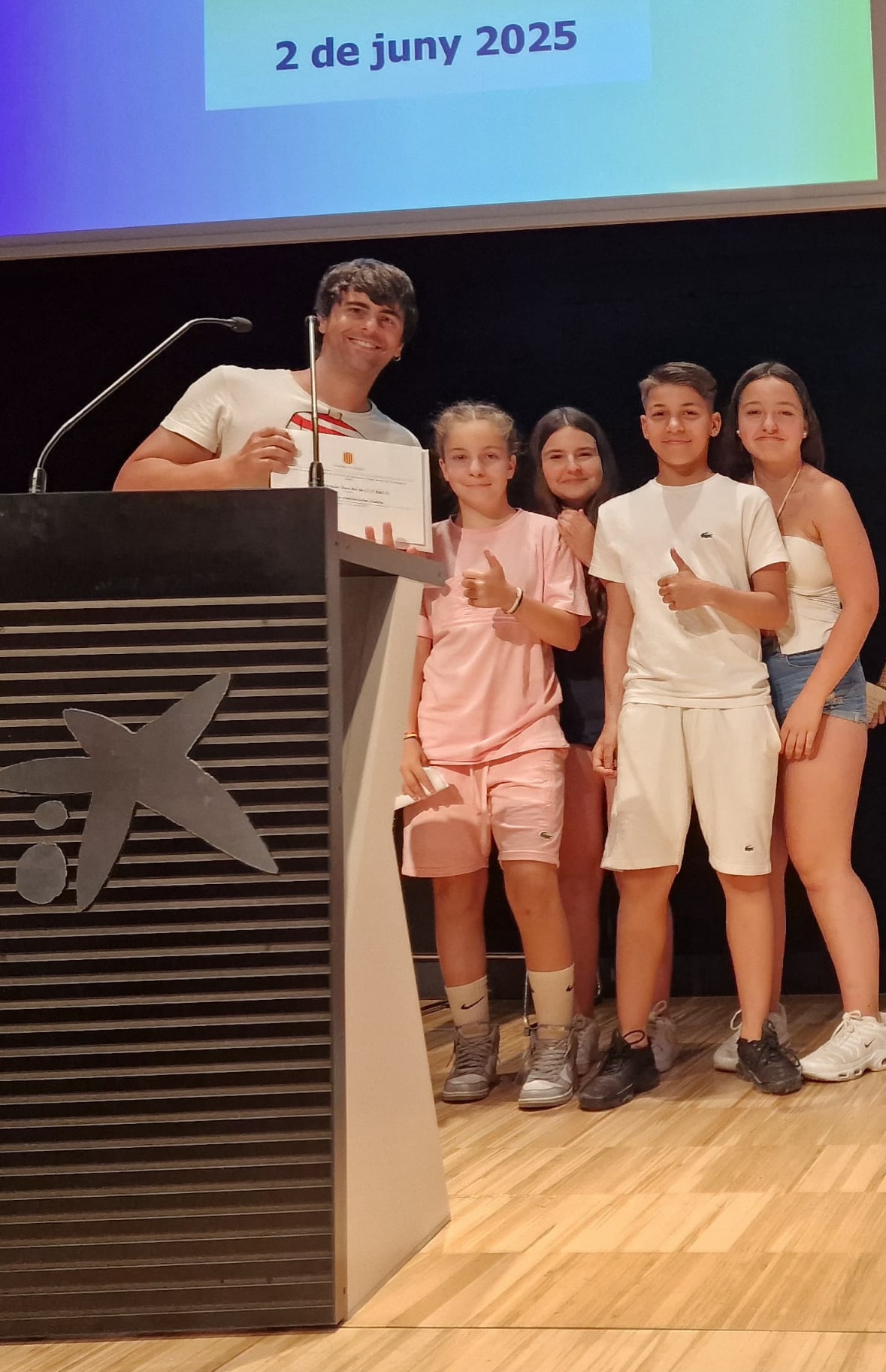 Gràcies a totes les persones que han fet possible aquest dia, als professors i professores que ens han acompanyat, i sobretot a cada company i companya de classe per formar part d’aquesta aventura tan bonica. Avui no només hem guanyat un premi, hem guanyat una experiència que ens ha unit i que ens inspira a continuar cuidant-nos i cuidant els altres.