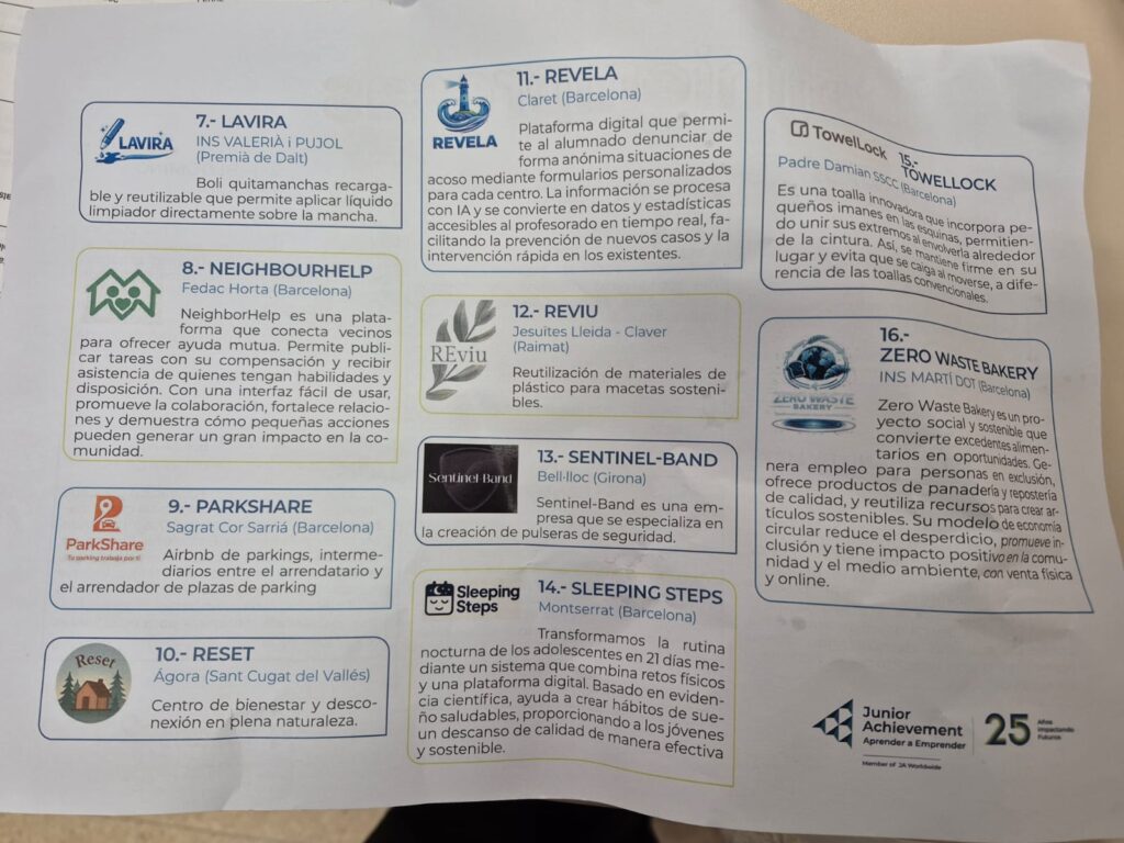 Els nostre alumnat de 1er de batxillerat han arribat a la XIV Competició Regional Catalana Miniempresa del programa Junior Achievement i han defensat el seu projecte ZERO WASTE BAKERY de valent, amb un nivell d’exigència que així ho requeria.