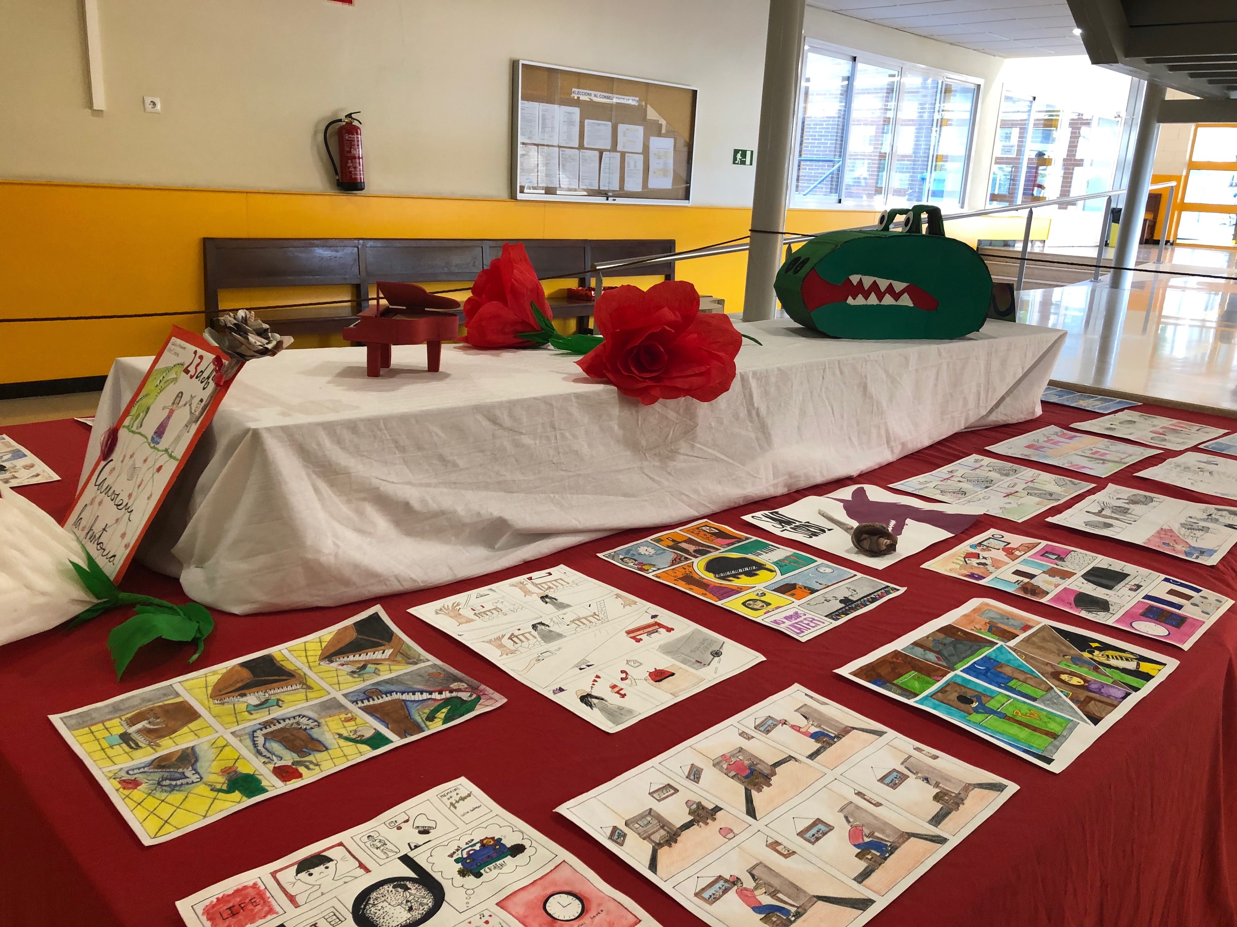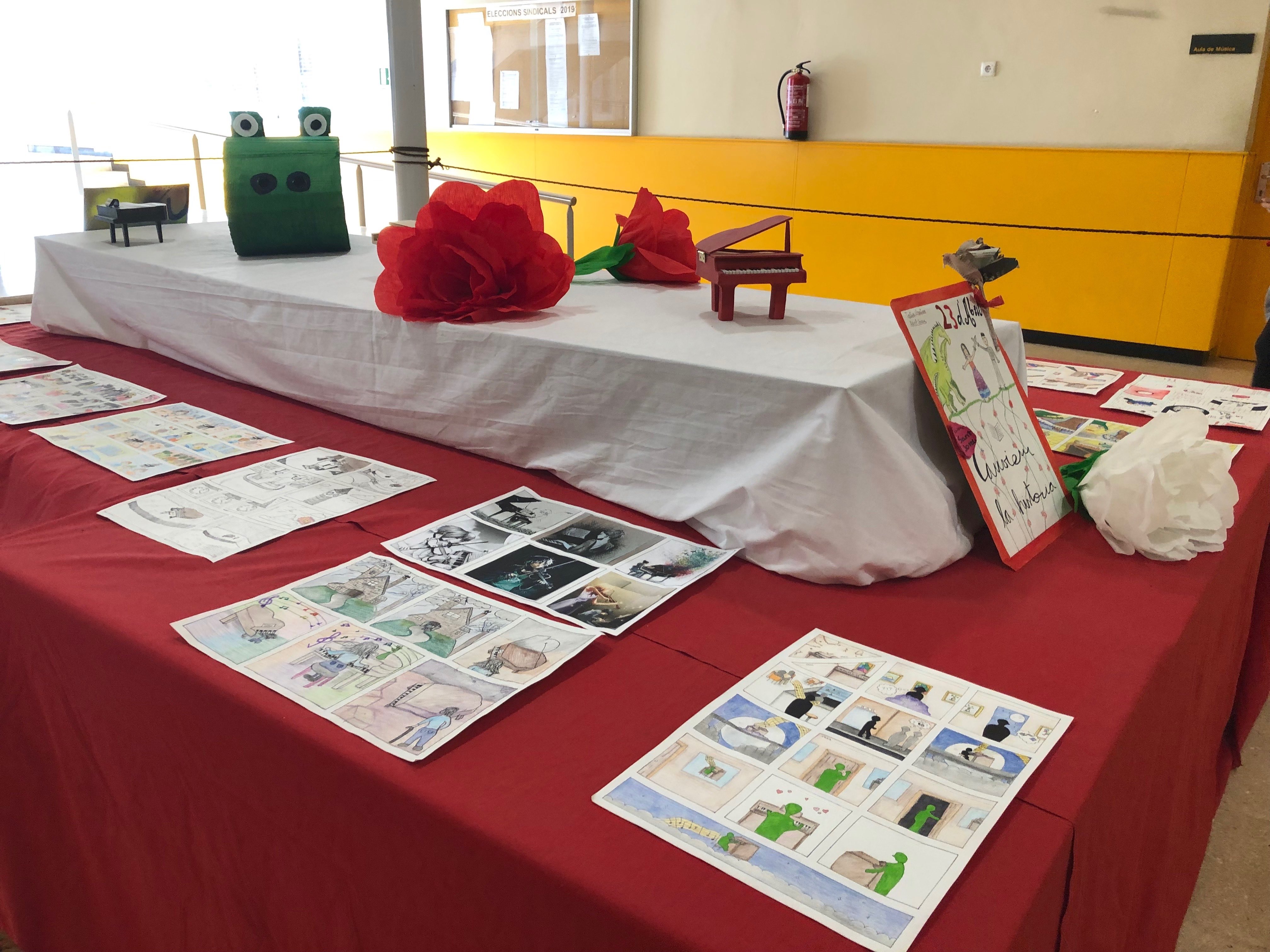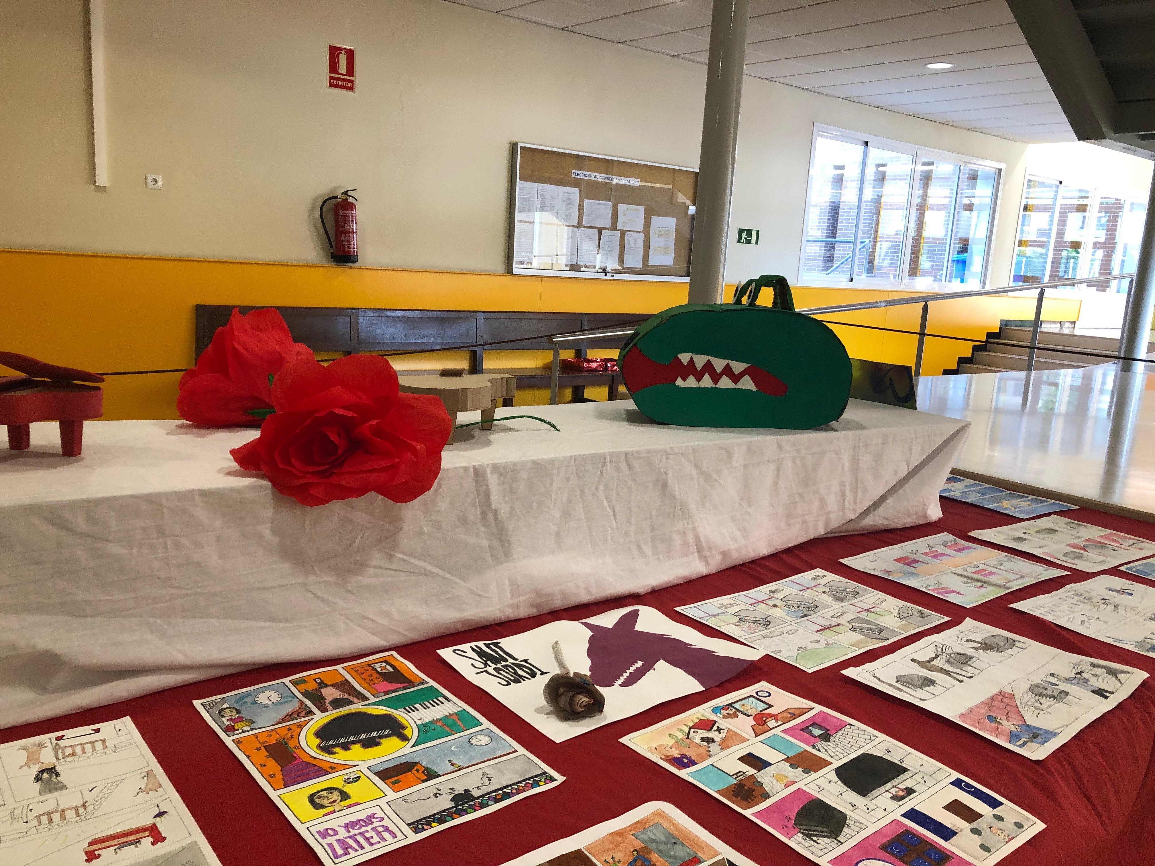 El 23 d’abril hem celebrat Sant Jordi a l’Institut. L’objectiu ha estat acostar els alumnes a la literatura i des d’una perspectiva interdisciplinària per fomentar el gust per la lectura i per la creació artística. Hem aprofitat la jornada per exhibir les obres creades pels alumnes i per lliurar els premis als alumnes guanyadors en diferents categories (anglès, castellà, català, còmic i música). Agraim la implicació tant del professorat del centre com de l’alumnat que l’ha fet possible.