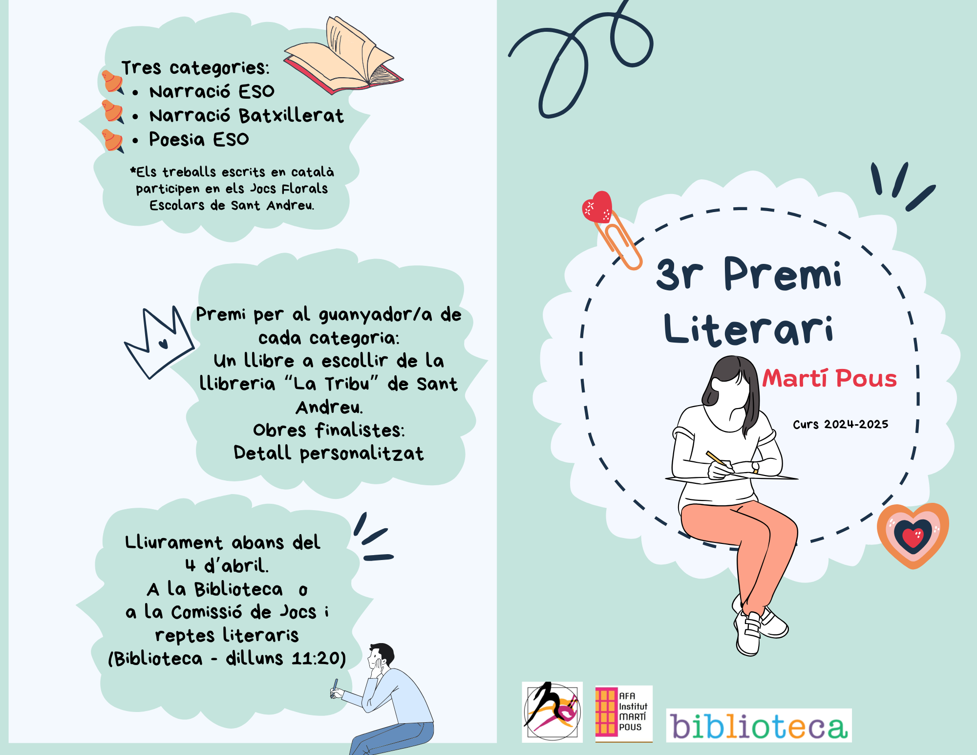 3r Premi Literari Martí Pous! Web Marti Pous17/03/25 Ja podeu participar en el 3r Premi Literari Martí Pous! Consulteu aquí les bases del premi.