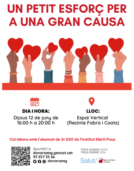L’alumnat de 3r A de l’Institut Martí Pous ha preparat un vídeo per promocionar la donació de sang i teixits que han ajudat a organitzar al nostre barri.