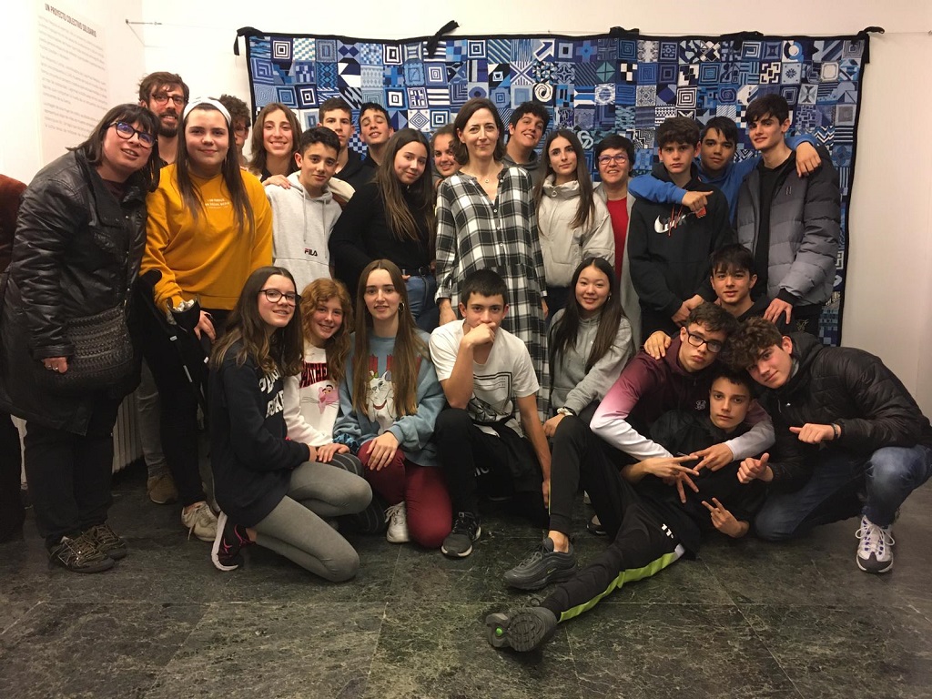 Lágrimas negras és un treball artístic i de gènere dissenyat per l’artista Alejandra Corral; on més de 2000 dones d’arreu del món que van patir violència de gènere van participar per construir un tapís comunitari. Cada dona va aportar un petit quadrat que representa una llàgrima; d’aquí el nom “Lágrimas negras”. Els estudiants de 3r ESO van replicar l’obra a classe, amb motiu de l’estudi dels ODS (Objectius de Desenvolupament Sostenible) que estem treballant a l’aula d’Educació Visual i Plàstica i van acabar exposant el treball amb l’artista a Madrid.