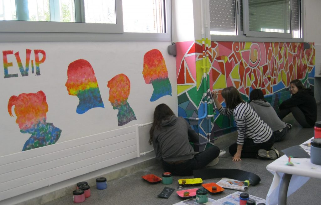 Durant els dies 10, 11 i 12  d’abril s’ha realitzat un mural a una de les parets de l’aula  d’Educació Visual i Plàstica de l’institut. Les alumnes de 3r: Sonia Gassol, Aroa López, Nara Carrizosa i Leyre Bernuz han estat les impulsores del projecte des del començament fins al final. Amb elles ha col·laborat una
