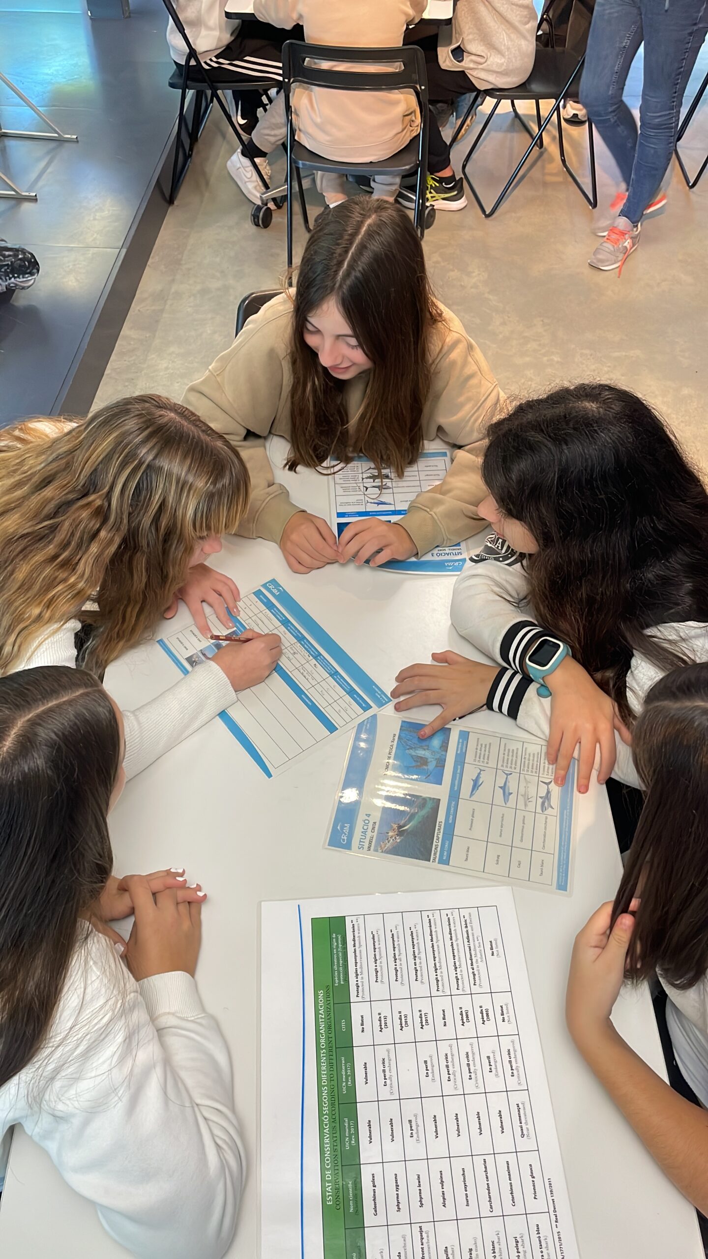 Durant la visita, els alumnes van aprendre sobre la tasca imprescindible que realitza el centre i, en concret, sobre les tortugues marines: la seva biologia, els perills que afronten i com es pot ajudar a la seva conservació. També van aprofundir en un tema preocupant: el “finning”, una pràctica il·legal que consisteix a capturar taurons per tallar-los les aletes, que després es comercialitzen, sovint per a la preparació de sopa d’aleta de tauró. Aquesta pràctica, a més de ser cruel, posa en risc la supervivència de moltes espècies de taurons i altera greument l’equilibri dels ecosistemes marins.