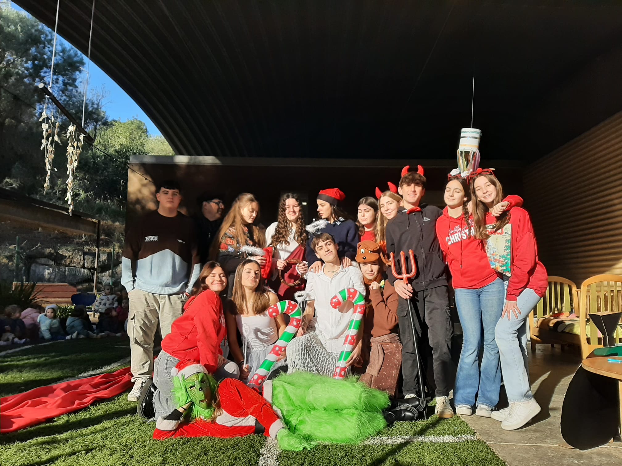 El passat 18 de desembre els alumnes de Creació literària de 1r de Batxillerat van deixar bocabadats els petits de la Llar d’infants Rojas Feliu i els avis de la Residència Ma. de la Salud. El que en un principi havia de ser només una situació d’aprenentatge feta a l’aula –reescriure unes escenes dels Pastorets de Folch i Torres– van decidir representar-les sobre l’escenari. Només de veure la cara dels infants espectadors quan es va fer caure el teló i va començar la representació, va pagar la pena: es va estroncar de sobte un devessall de plors i els petits van seguir amb atenció el que s’hi representava.