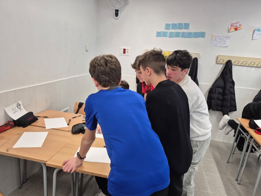 Els nostres alumnes es van organitzar en subgrups, compartint resultats i ajudant-se mútuament per avançar en la resolució dels problemes, ja que sovint la resposta d’un repte esdevé una dada necessària per resoldre el següent. Més enllà de la rapidesa, l’objectiu principal és arribar a completar tots els reptes amb èxit, fomentant la perseverança, la cooperació i el raonament matemàtic.
