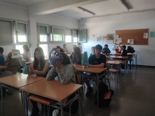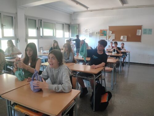 Després de la xerrada els alumnes van fer un petit taller de Furoshiki