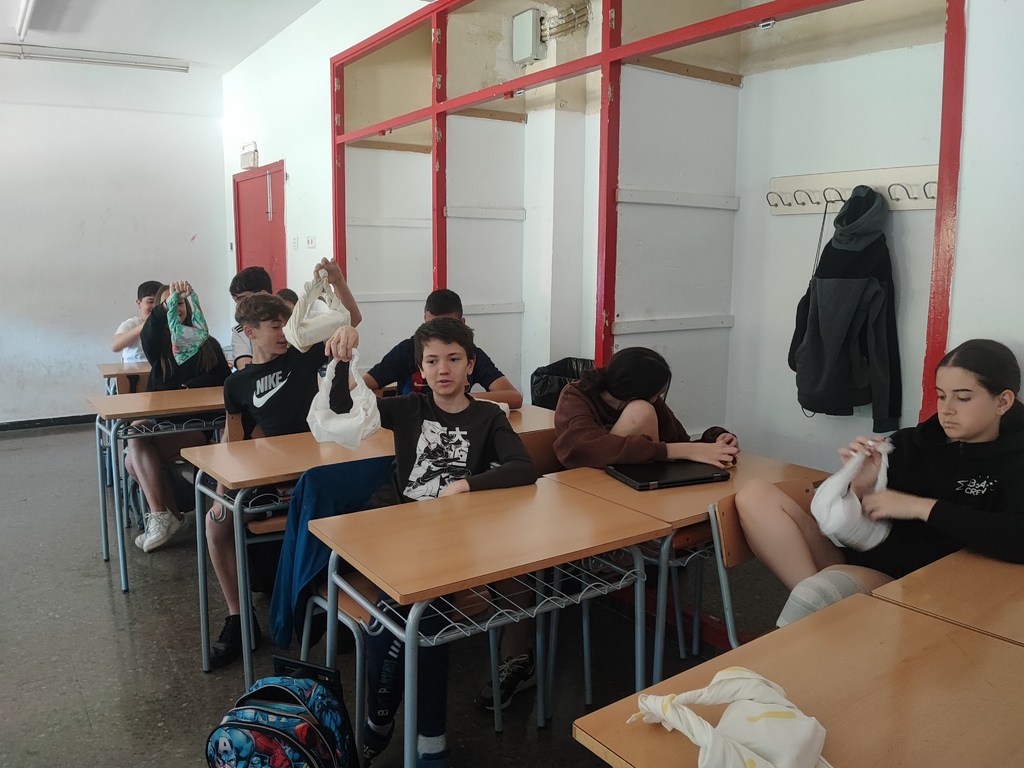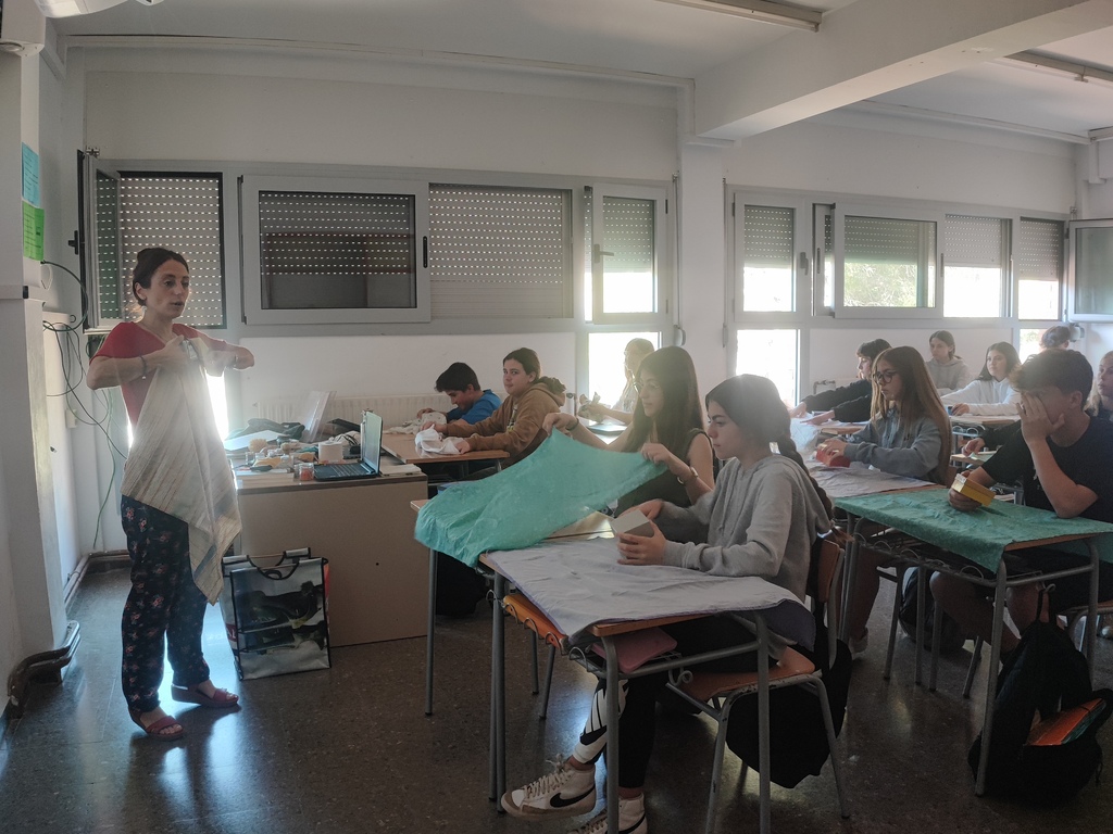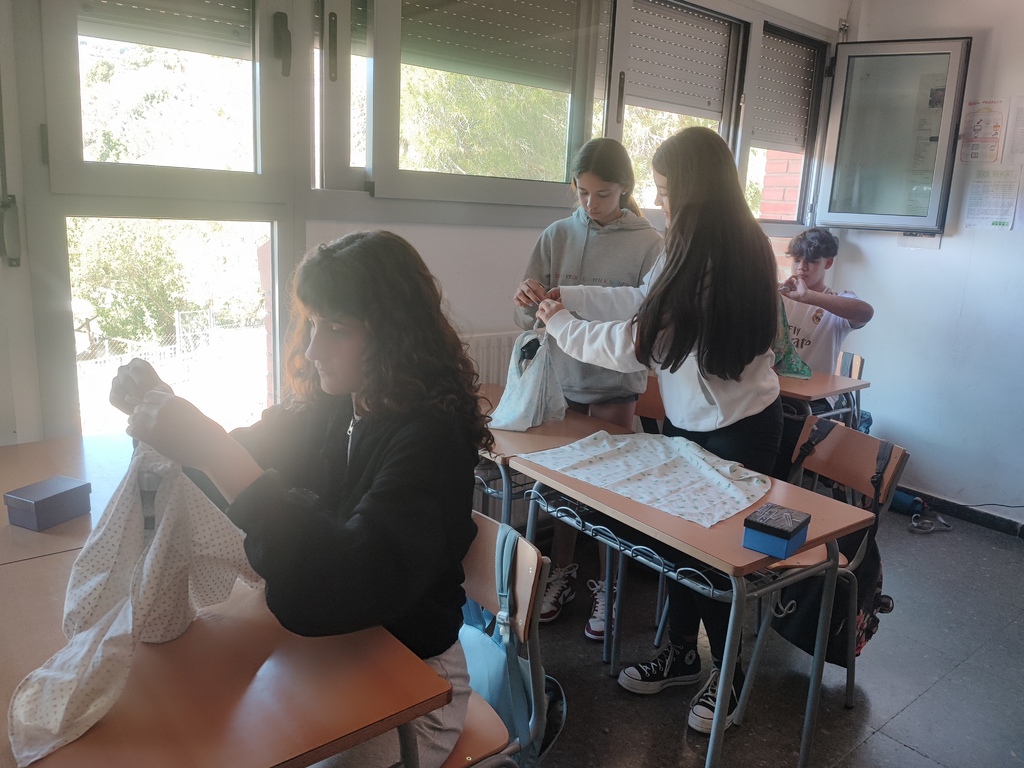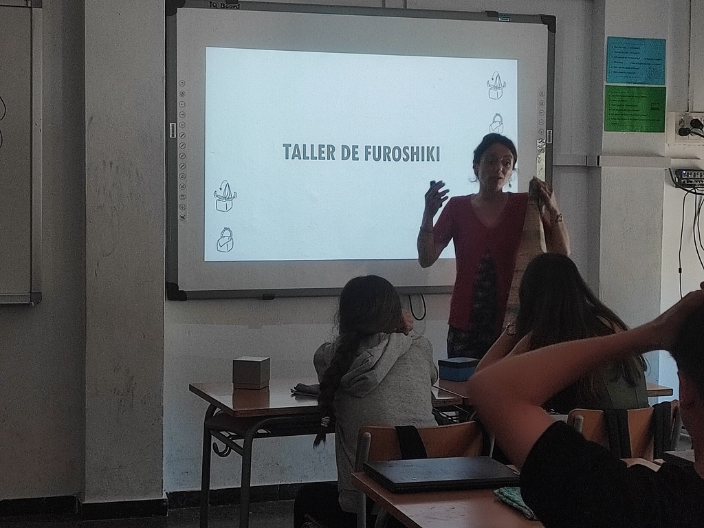 Després de la xerrada els alumnes van fer un petit taller de Furoshiki