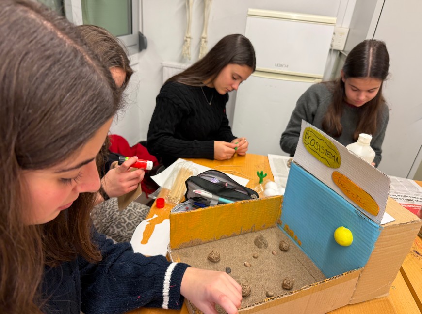 Els alumnes de 4rt d’ESO de Cultura científica, estan aquests dies treballant en grups de 4 al laboratori. Han triat un ecosistema arreu del planeta, terrestre o aquàtic, i han començat a elaborar la seva maqueta. En aquest producte final  s’han de veure les relacions tròfiques entre les diferents poblacions que ells mateixos han escollit.