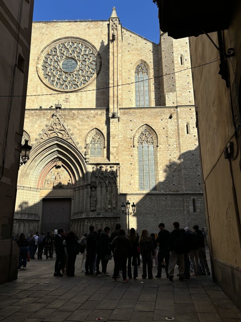 Abans de començar les vacances de Nadal, l’alumnat de 1r de batxillerat va dur a terme una ruta literària per la Barcelona medieval. Van fer aquest viatge en el temps passant per alguns dels carrers més antics de la ciutat. L’activitat va començar a la plaça del Rei, molt a prop de la catedral, i va acabar a l’església de Santa Maria del Mar.