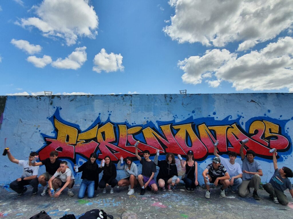 Avui, dia 19 de juny, hem anat al Mauerpark i hem fet un taller de grafiti. Després hem vingut al Beach Club Mitte i hem jugat a vòlei platja.