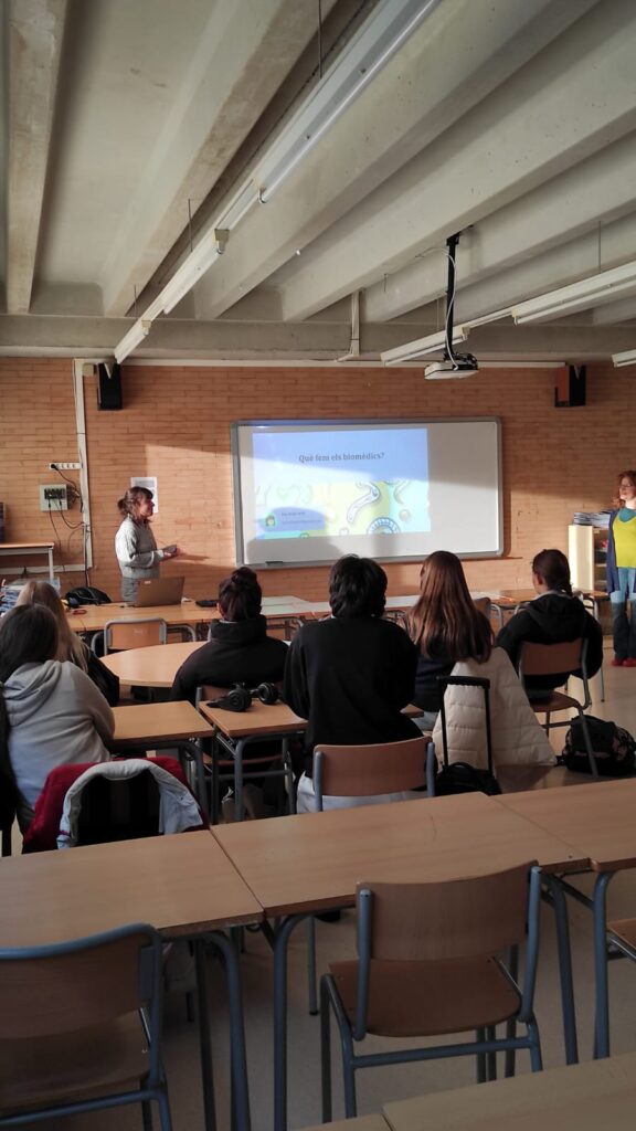 El passat dimecres, l’ex-alumna de l’institut, Eva Soler, graduada en Ciències Biomèdiques i que actualment forma part del grup de recerca en Càncer Ginecològic de l’Institut d’Investigació Biomèdica de Bellvitge (IDIBELL), va venir a les aules dels nostres alumnes de batxillerat. Així, l’alumnat va poder conèixer de primera mà la seva experiència. També la realitat del dia a dia en un laboratori de recerca especialitzat en l’estudi del càncer.