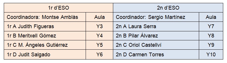 Us indiquem els coordinadors de nivell, els tutors de cada grup i les aules de reunió: