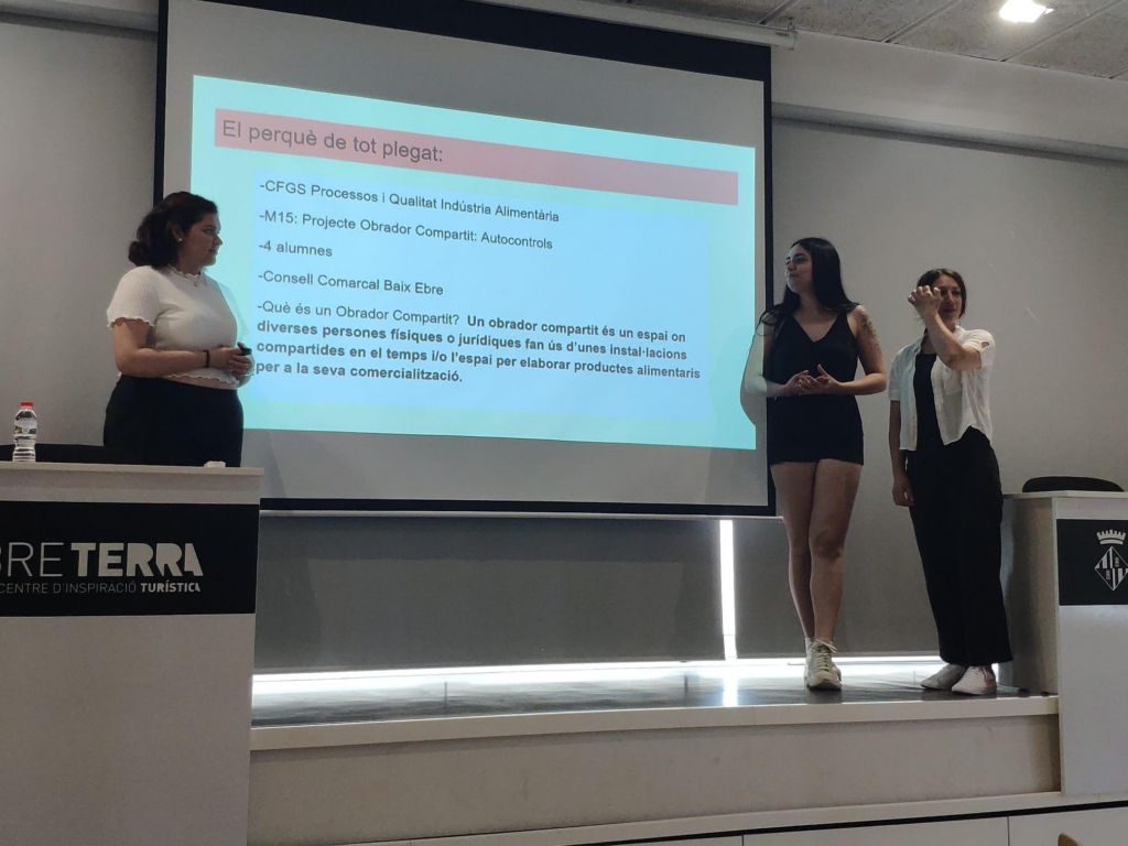 En aquesta trobada han intervingut entre d’altres les alumnes Carla Montañés, Saray Prada i Nàdia Lungu del CFGS de Processos i Qualitat en la Indústria Alimentària del nostre institut que han realitzat un projecte per tal que l’espai compleixi amb els requisits que marca la normativa des del punt de vista de la Seguretat Alimentària.
