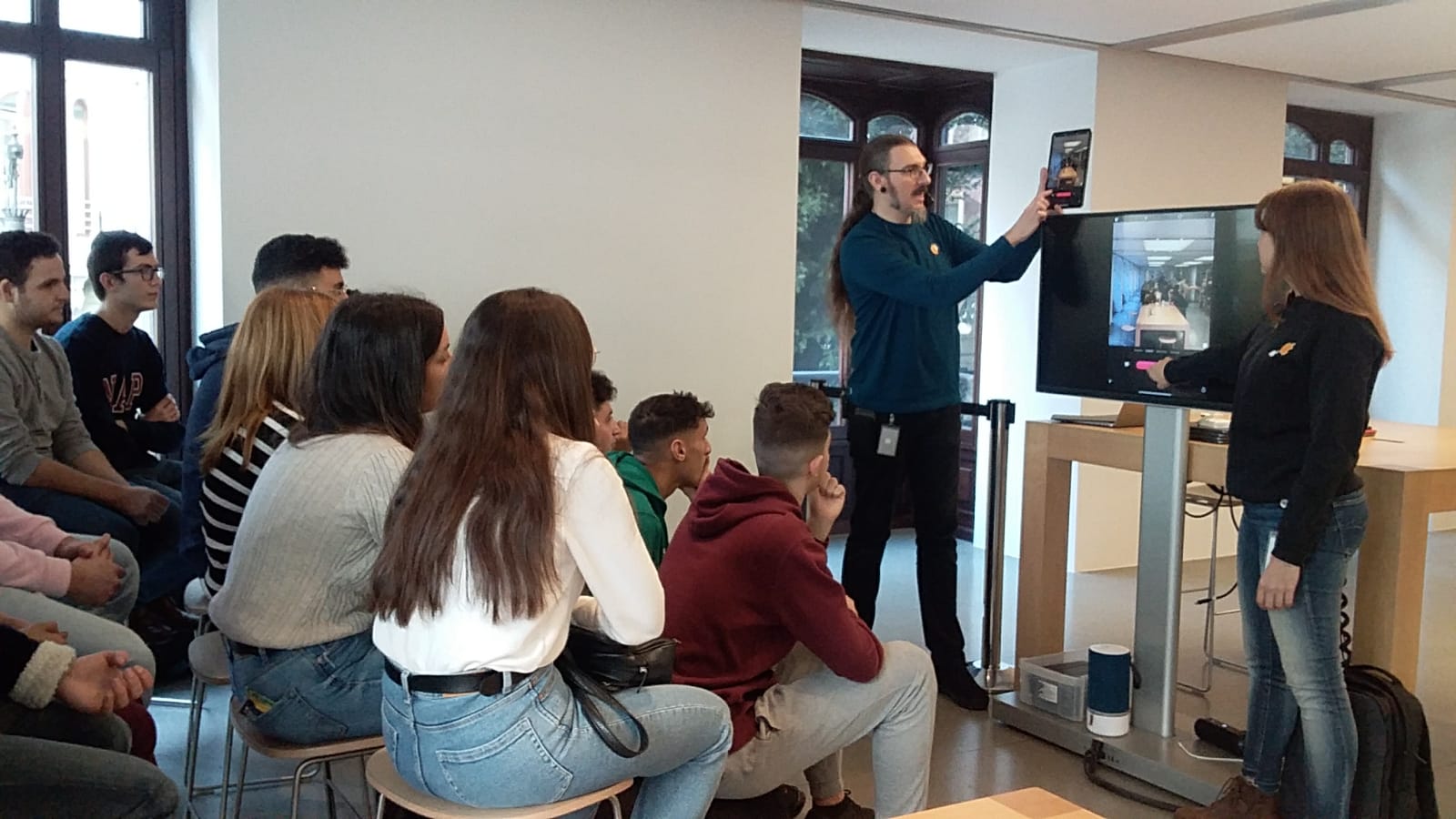 La Família Professional d’Administració i Gestió es desplaça a València per a vistar l’Apple Store de la ciutat i viure una iExperiència molt interactiva. Per equips i amb l’ajuda d’un dispositiu electrònic facilitat per la mateixa empresa, els assistents van portar a terme la creació d’unes campanyes promocionals de diferents productes i van conèixer les aplicacions Clips i Jump Cut. Treball en equip, cooperació i innovació resumeixen la jornada.