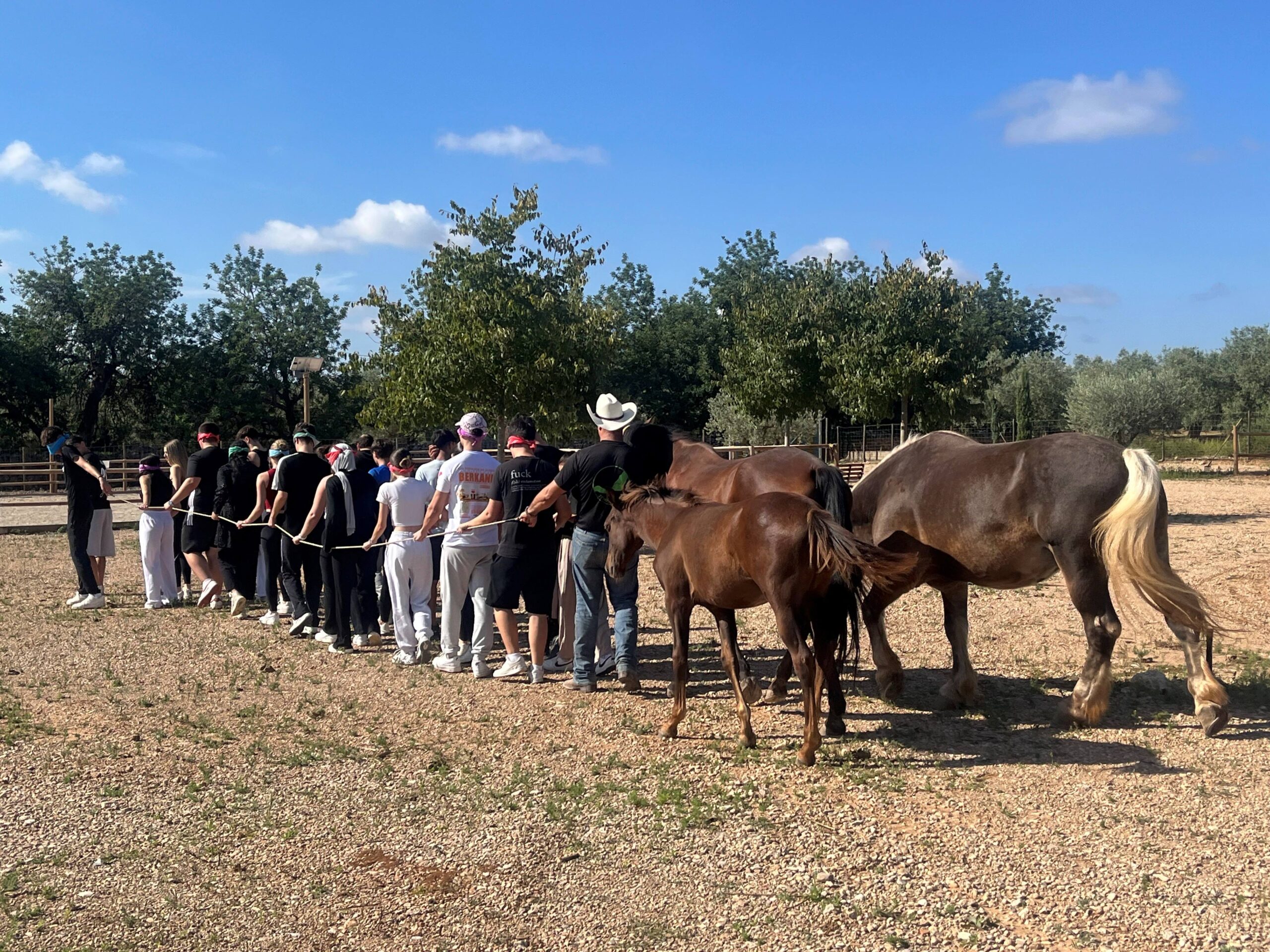 D’una banda, l’alumnat de 2n de CFGM està realitzant les activitats a Temps de Cavalls, on està treballant la comunicació, la cohesió i la coordinació a través d’experiències vivencials. L’objectiu d’aquest taller és fomentar l’empatia entre companys i companyes, així com descobrir la importància d’una bona sintonia per assolir objectius comuns.