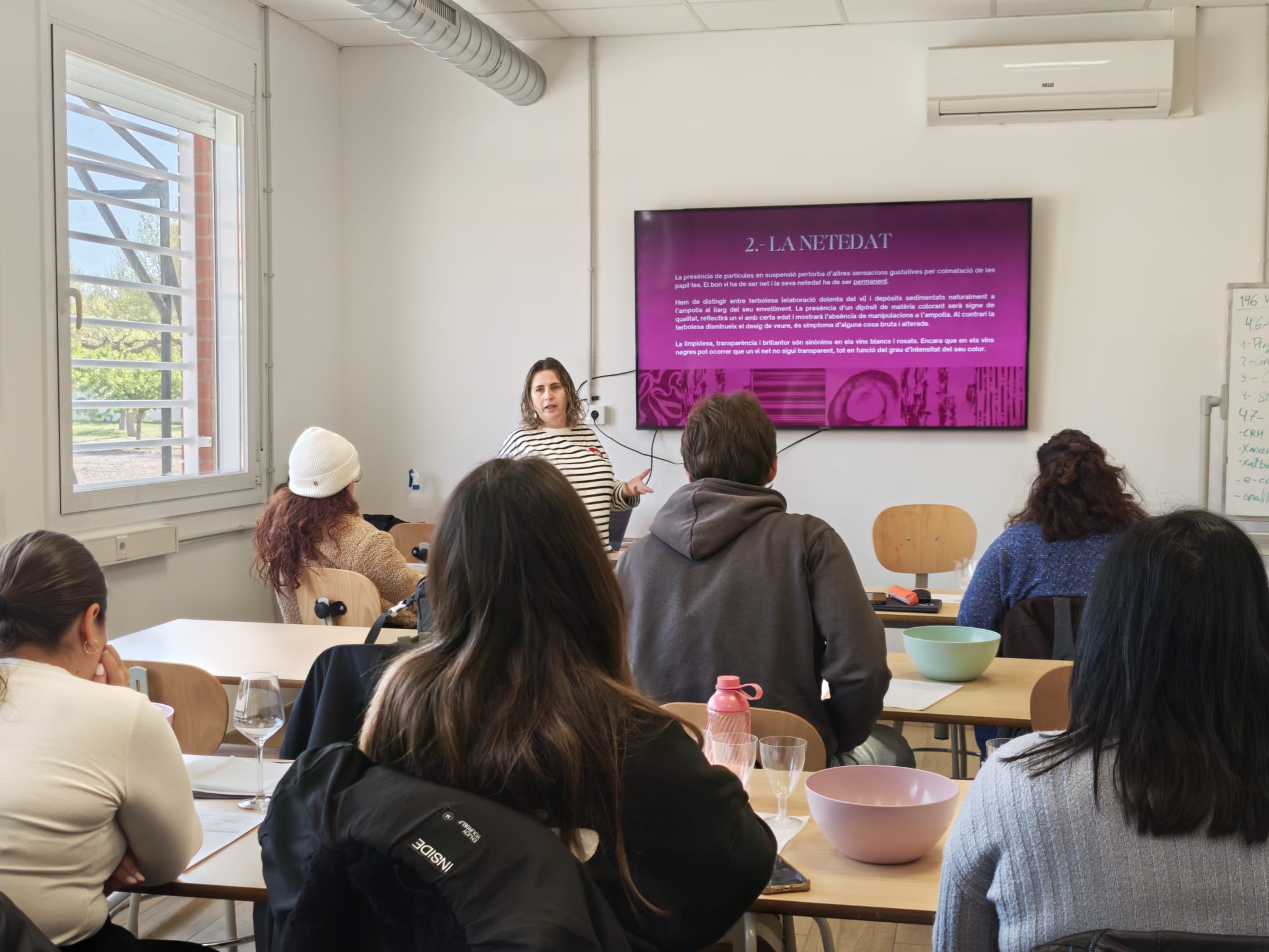 Durant la sessió, els estudiants han treballat les diferents fases del tast, posant en pràctica l’observació visual, l’anàlisi olfactiva i la valoració gustativa. Aquesta metodologia permet identificar les característiques organolèptiques dels productes, així com reconèixer atributs de qualitat i possibles defectes.