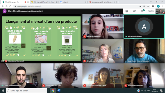 TOTDAQUI és la cooperativa de l’aula simulada dels estudiants d’Activitats Comercials de 2n que comercialitza productes de les nostres terres com l’arròs, l’oli, l’ametlla, els cítrics i la mel. El projecte que van presentar divendres 29 de maig és fruit d’aquest treball que han hagut de finalitzar per videoconferències per continuar gestionant l’empresa des dels seus departaments (recepció, compres, administratiu, vendes i màrqueting). Tot el professorat de Comerç i Màrqueting volem agrair l’esforç que han realitzat per tirar endavant l’empresa de forma eficient.