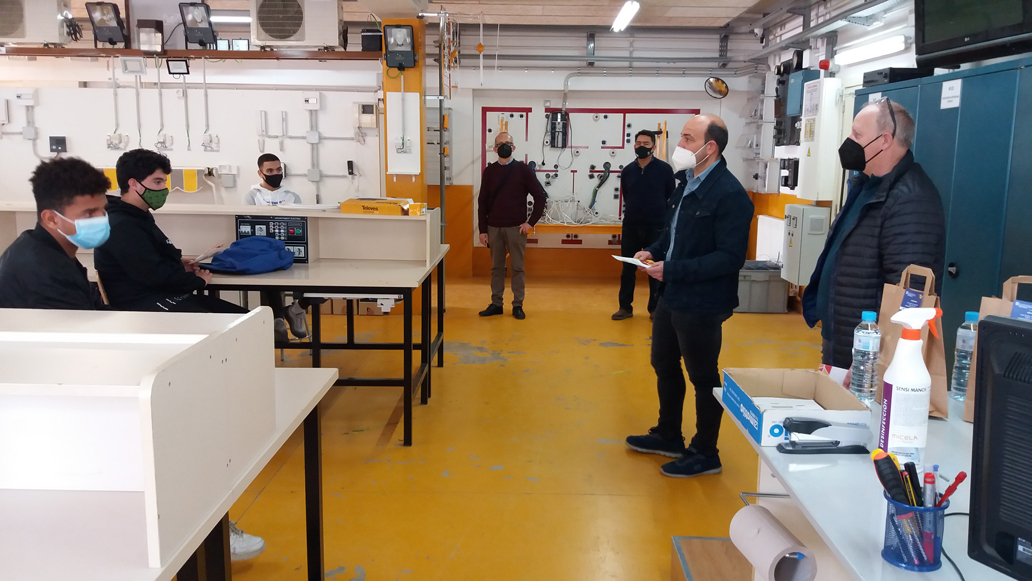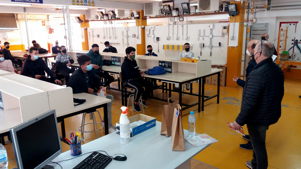 Dins del marc de les VIII Jornades de l’Emprenedoria, el dep. Elèctric va organitzar una xerrada amb el gremi d’Instaladors d’Amposta. Ens van acompanyar el Sr. Joaquim Esteve, president, i el Sr. Joaquim Tomàs vicepresident. El missatge que es va transmetre a l’alumnat va ser clar, EL SECTOR ESTÀ CREIXENT I FAN FALTA TÈCNICS QUALIFICATS. Encoratjar, per tant, a finalitzar la seva formació i remarcar que el Modul d’instal·lacions té una consolidada projecció de futur.