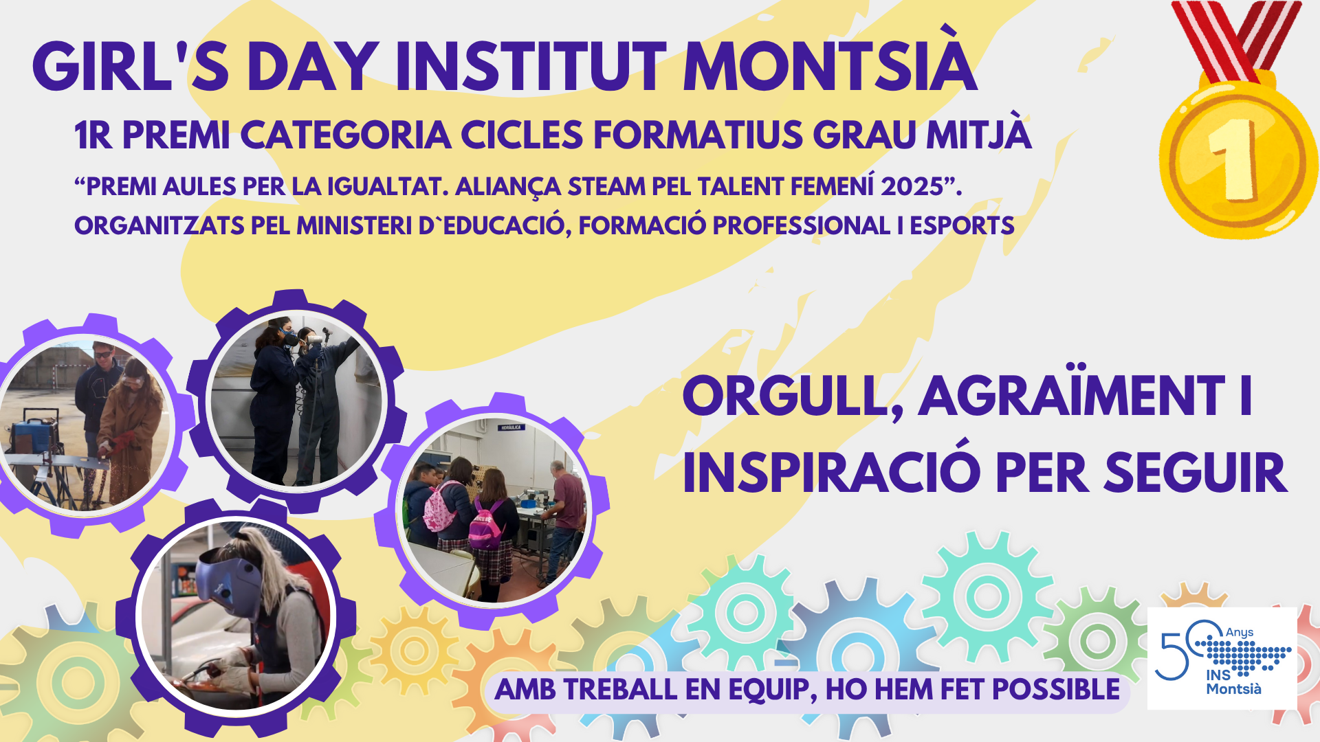 L’Institut Montsià ha estat guardonat pel Ministeri d’Educació, Formació Professional i Esports amb el 1er Premi Aliança STEAM pel talent femení en la categoria de Formació Professional de Grau Mitjà pel projecte del Girl’s Day, amb una dotació de 5.000€.