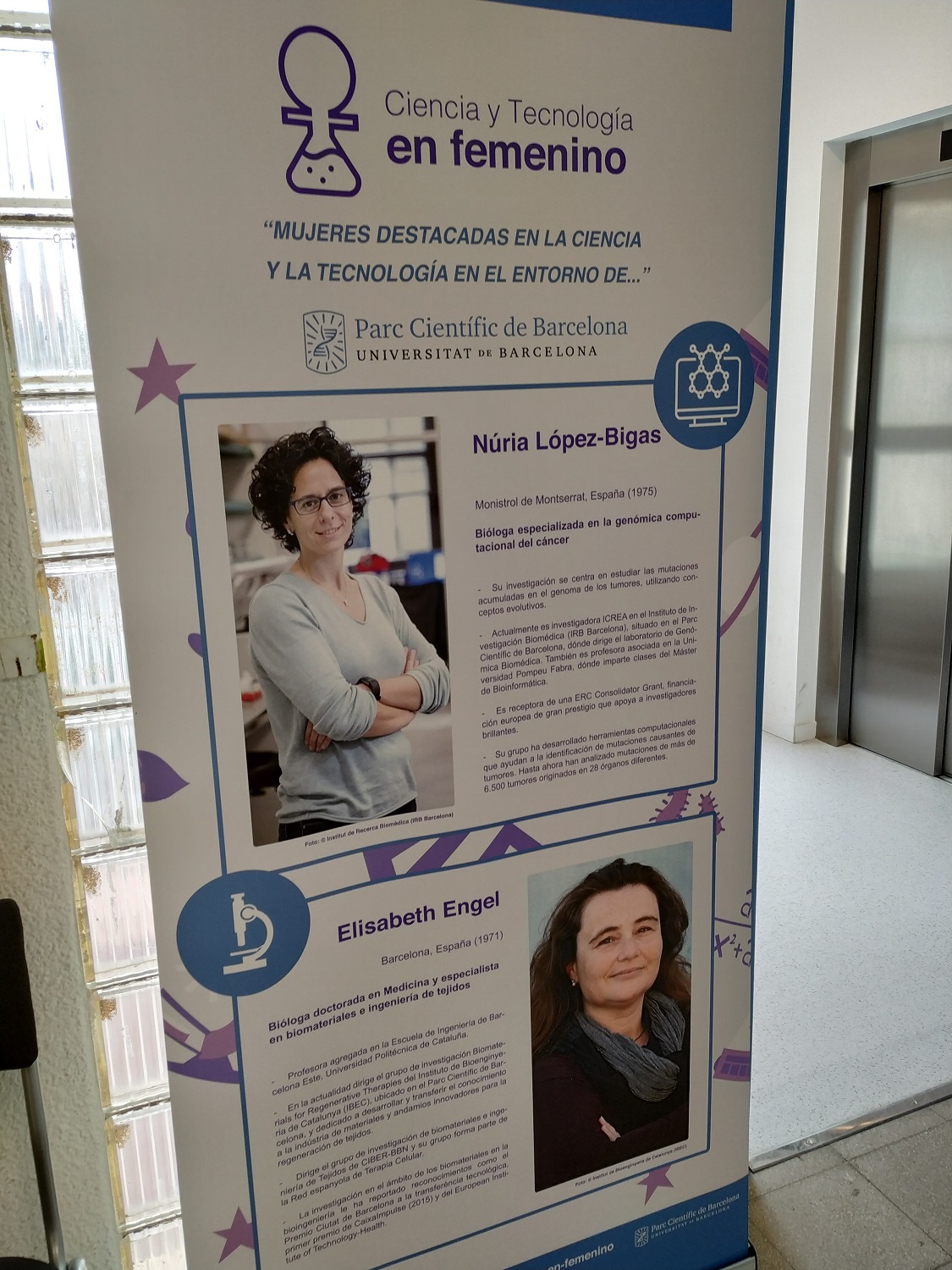Gràcies a aquesta exposició podem conèixer diferents dones que han destacat al llarg de la història en el món de la ciència i la teconologia, biòlogues, metgesses, astrònomes… Entre d’altres: Rosalind Franklin, Rita Levi Montancini, Núria López-Bigas, Eliasbeth Engel, Emmanuelle Charpentier, Anna Veiga, Mara Dierssen, Lene Vesteergard, Arlene Sharpe, Valentina Tereshkova, katherine Jhonson, Margarita Salas, Christiane Nüsslein-Volhard, Cecilia Payne-Gaposhkin, Hedy Lamarr, Hipatia d’Alexandria, Ada Lovelace…